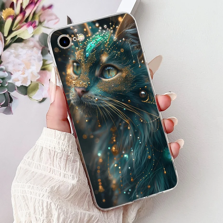 Para Apple iPhone SE 2020 funda bonita con cubierta pintada de gato transparente funda de teléfono delgada suave de silicona para iPhone SE 2022 iPhoneSE 2020 parachoques