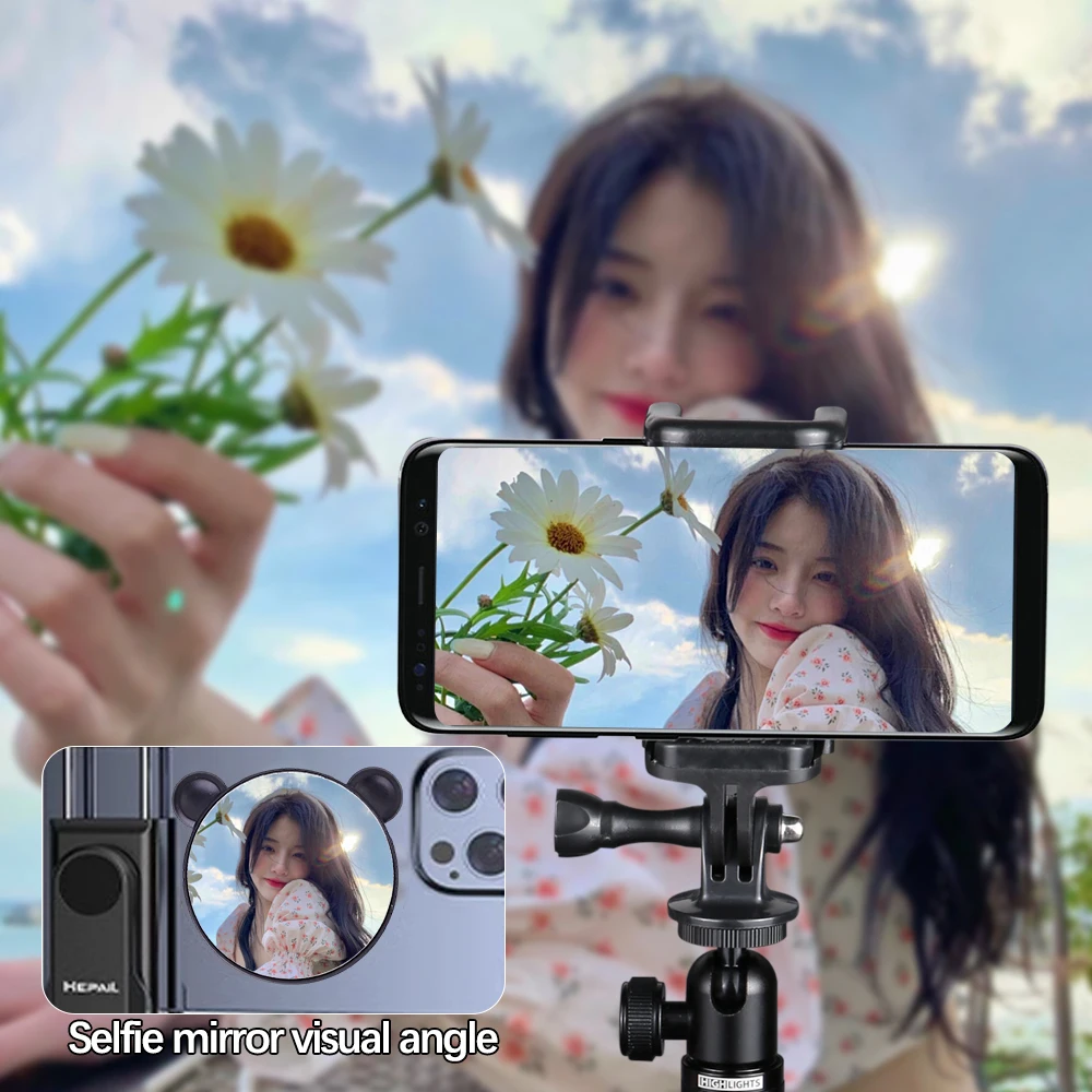 Uso: Un espejo para selfies diseñado para el uso de una cámara trasera en el Vlog para selfies del teléfono móvil.Resuelva el punto dolor de que los usuarios no pueden componerse y se vean al tomar selfies.