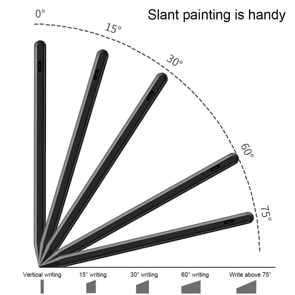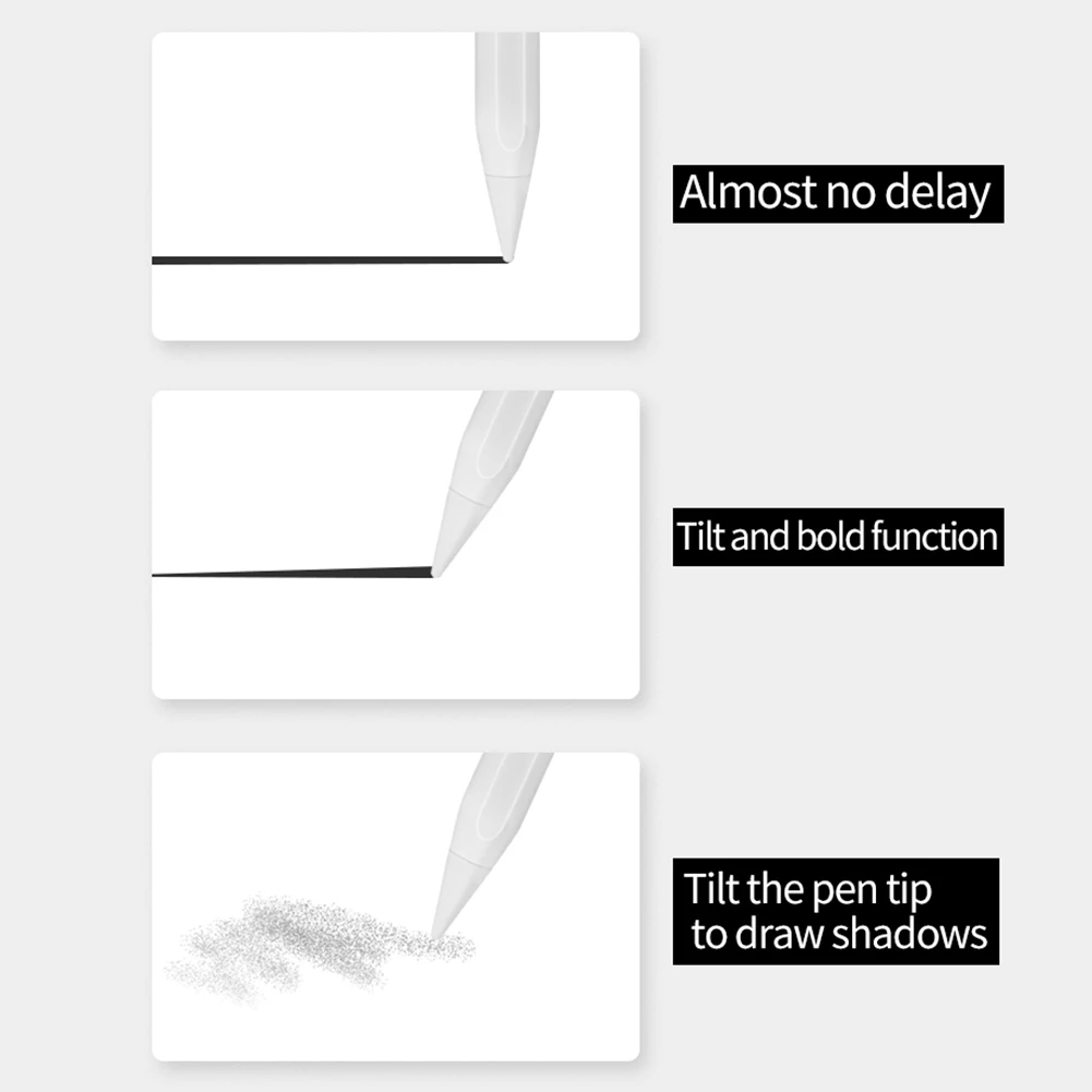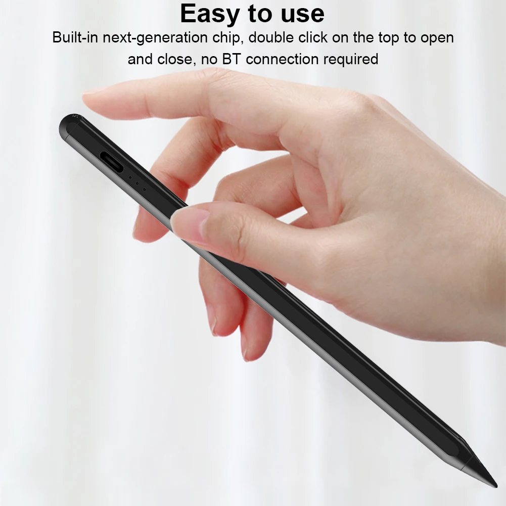4.Fácil operación y carga rápida:No se necesita conexión Bluetooth: simplemente toque el botón de la tapa del lápiz para encender el lápiz capacitivo.Una carga de 20 minutos admite 10 horas de uso, lo que garantiza que siempre esté listo para trabajar o crear.