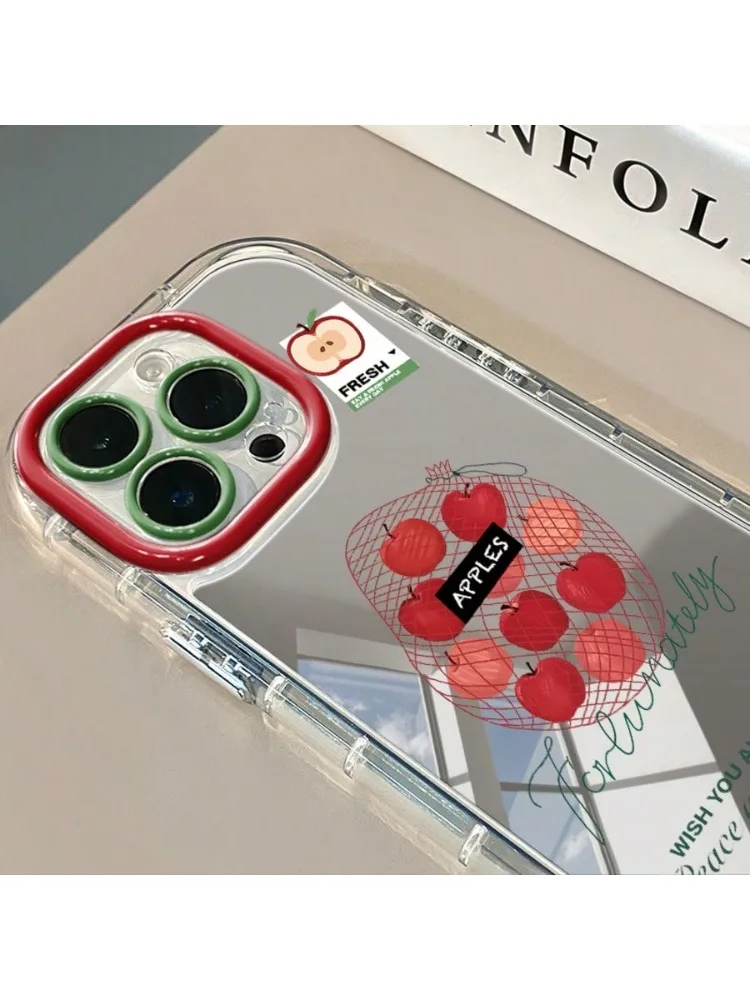 APPLES-funda de teléfono con espejo de la suerte para iPhone 17AIR 11 12 13 14 15 16 17Pro Max Plus, anillo de lente anticaída, funda rígida de 1,5mm
