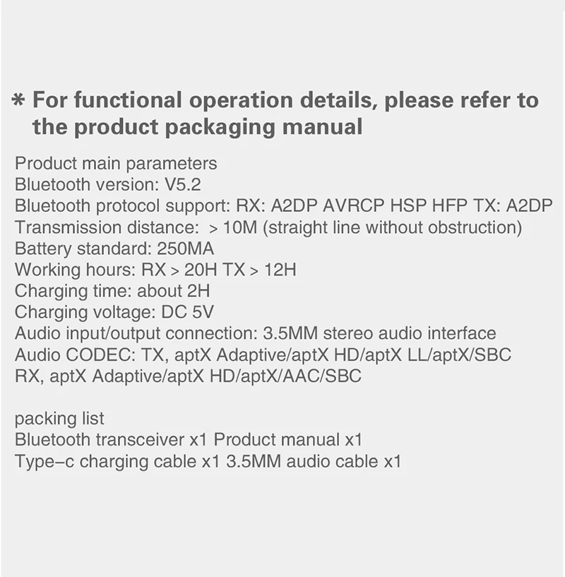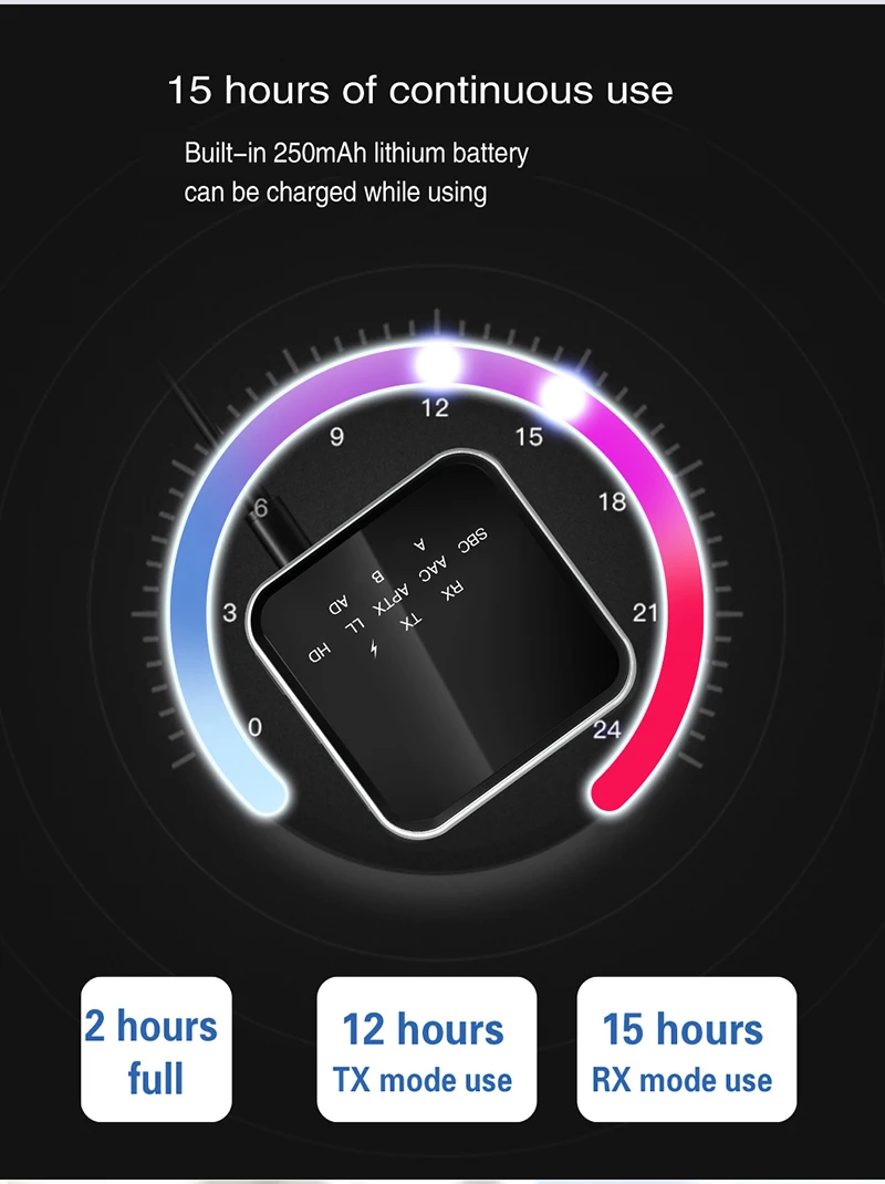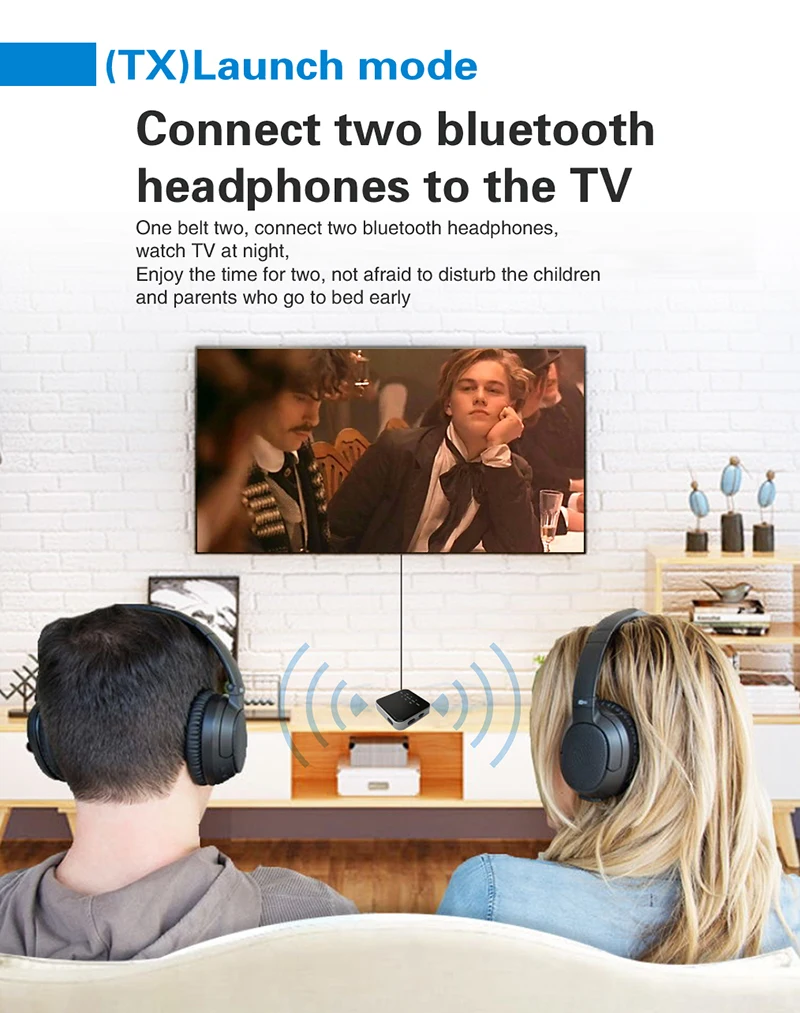 10. Modo TX del transmisor para: TV/PC/proyector/amplificador de potencia/TV Box/auriculares Bluetooth/auriculares/altavoz Bluetooth, etc.