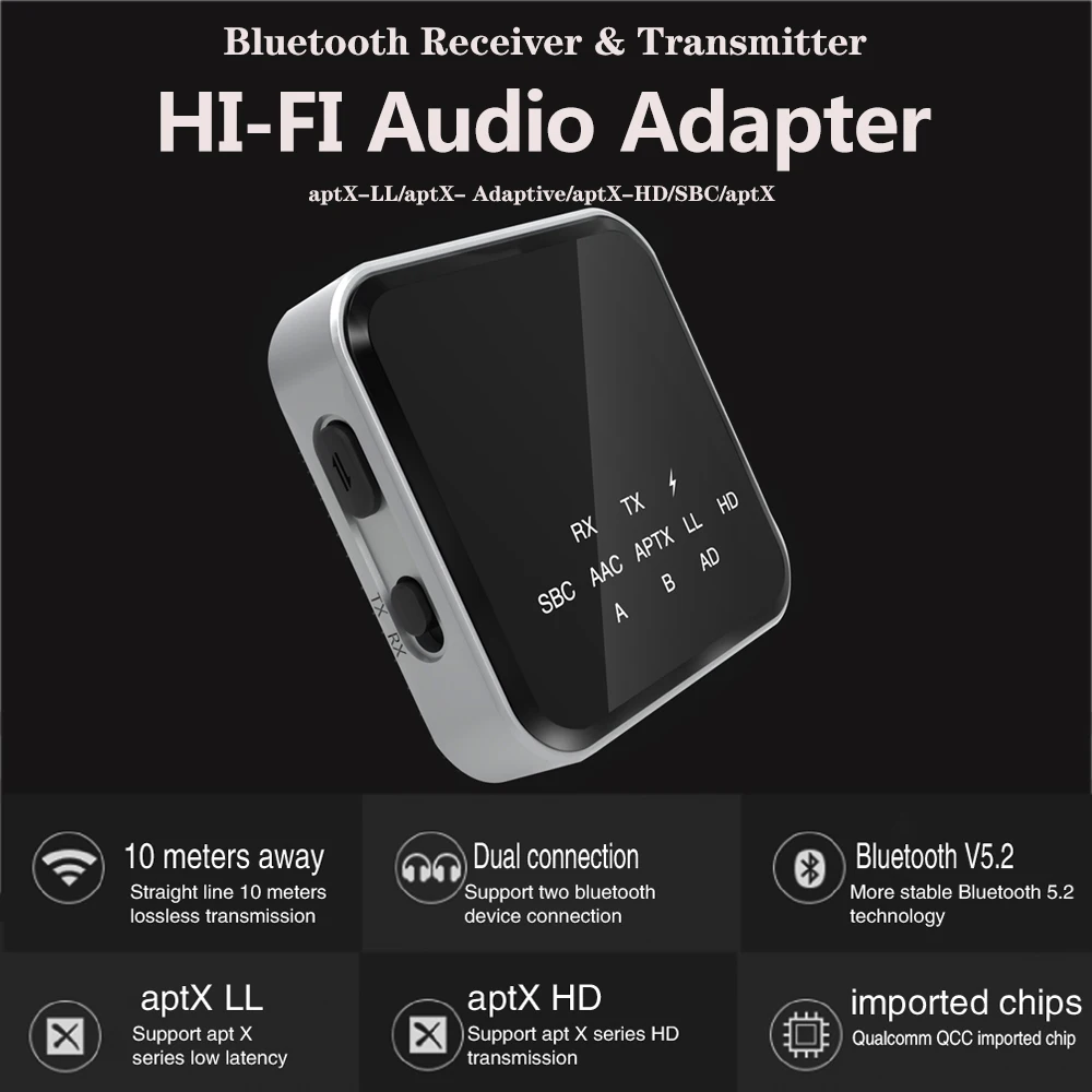 Comprar aptX-Adaptive/LL/HD Bluetooth 5,2 transmisor receptor de Audio 3,5 MM AUX baja latencia sin pérdidas HIFI estéreo música adaptador inalámbrico