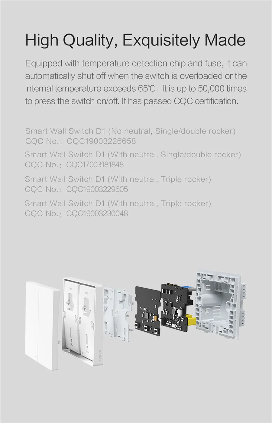 1)Este es el interruptor inteligente aqara D1 original.De las cadenas ecológicas mijia, funciona con la aplicación oficial mijia mi en casa.Electrodomésticos inteligentes Mijia de competición