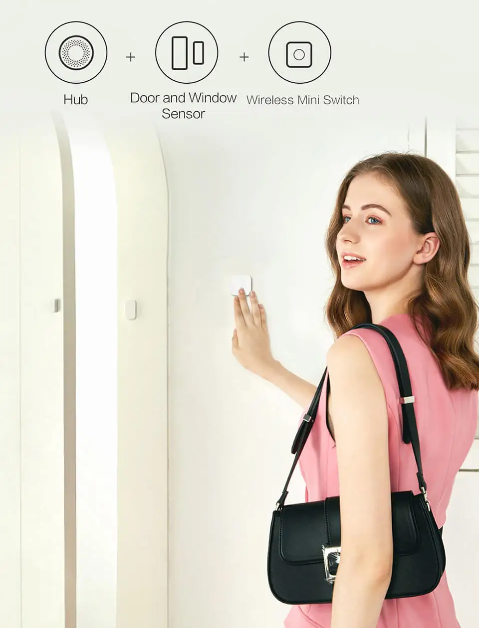 Presione dos veces el Mini Switch inalámbrico para activar el modo de alarma del Aqara Hub antes de salir de casa.Si se abre inesperadamente una puerta o ventana, el Hub emitirá una alarma sonora y luminosa.Las notificaciones también se enviarán a su teléfono.