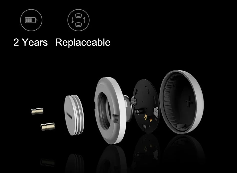 La carcasa está hecha de material anti-UV y el color no se desvanecerá, lo que permite un uso a largo plazo. Consume poca energía y la batería de un botón dura más de 2 años en circunstancias normales.