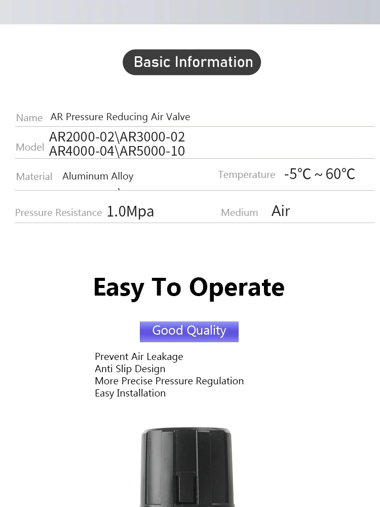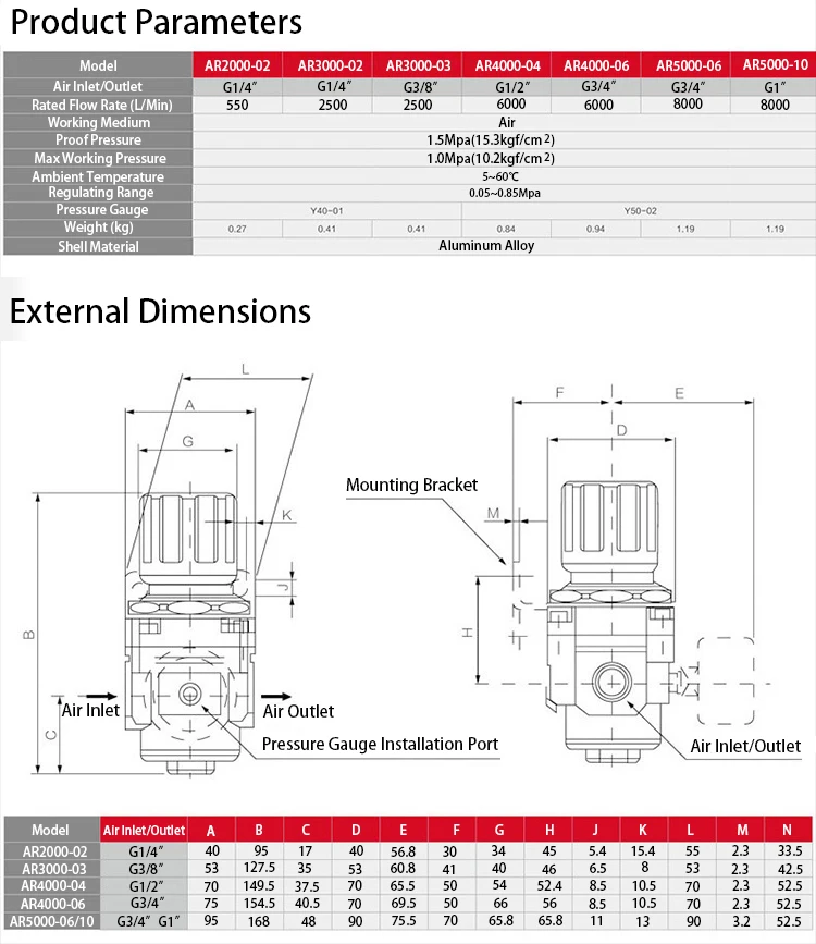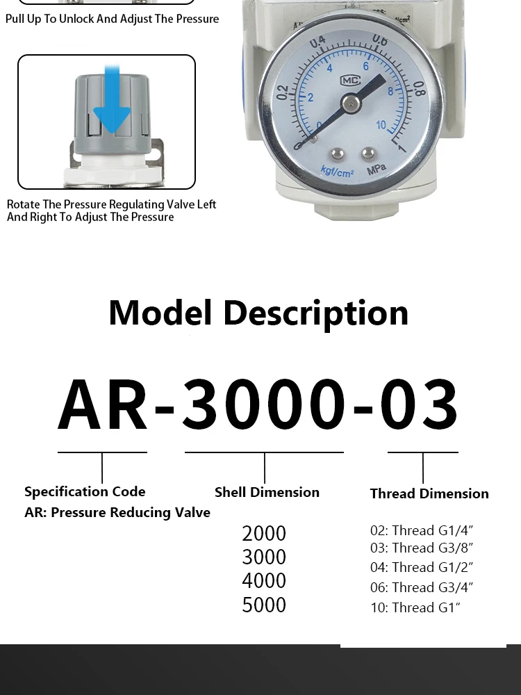 AR4000-04 AR4000-06 AR5000-06 AR5000-10 AR2000-02 AR3000-03 Válvula de alivio regulador de presión del compresor de aire comprimido neumático
