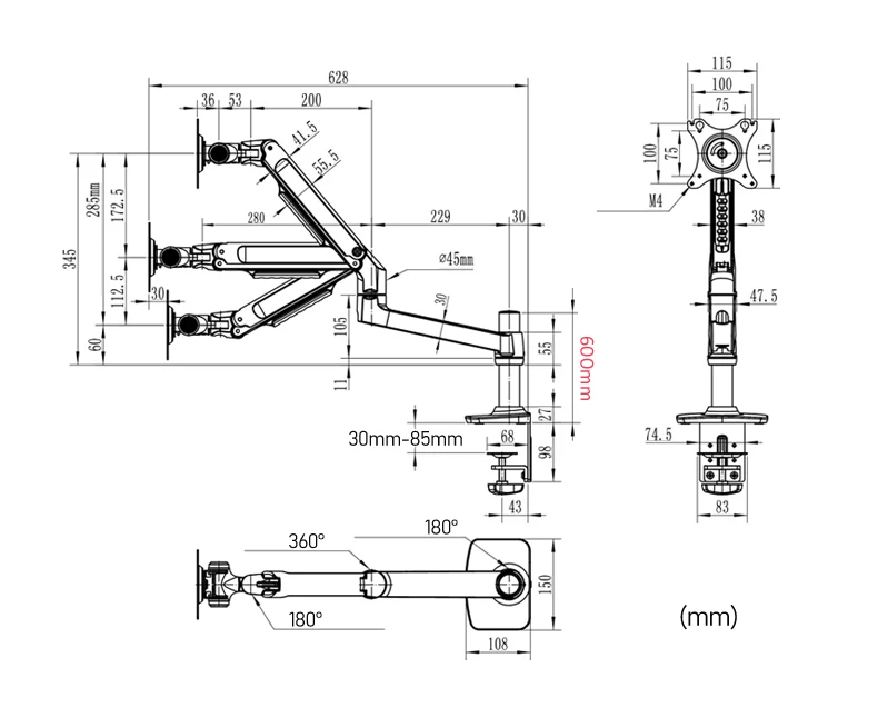 Sujeción de escritorio: Grosor del escritorio dentro de 30-85mm,