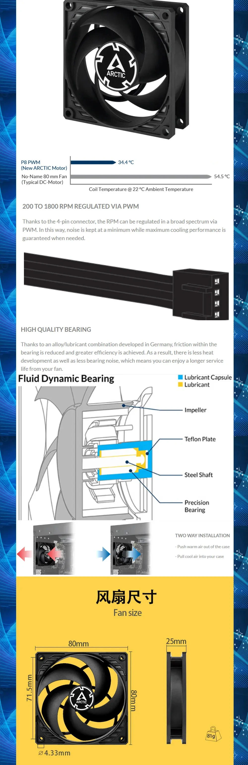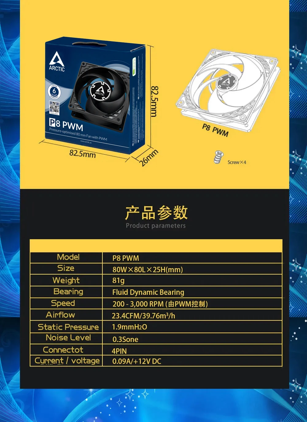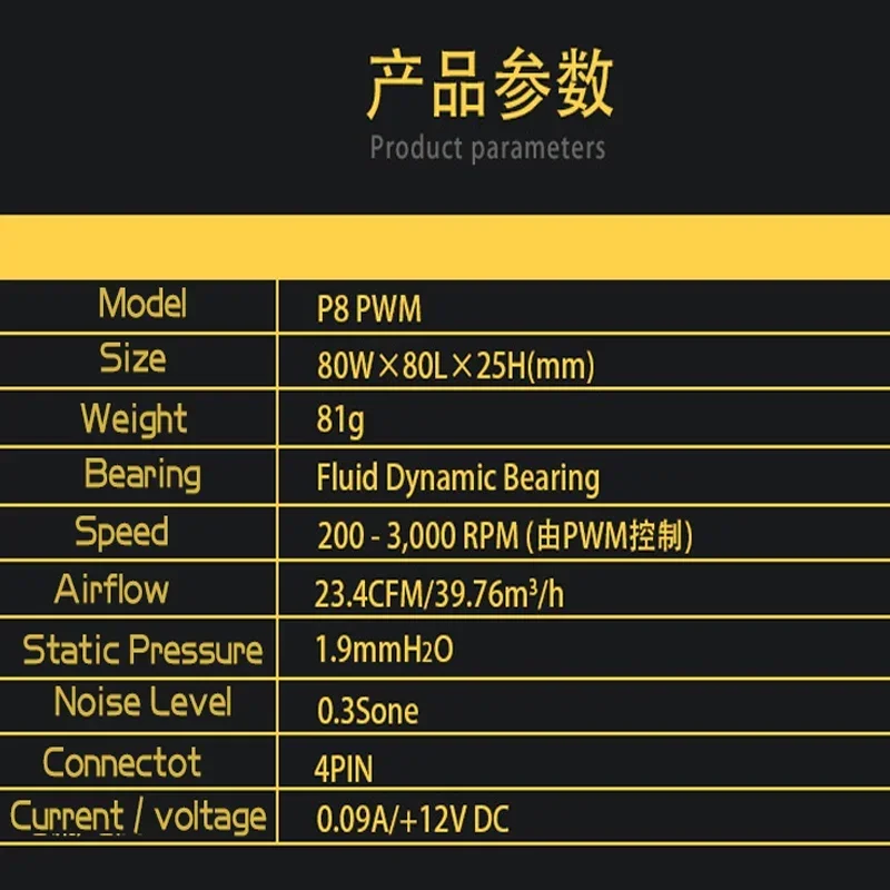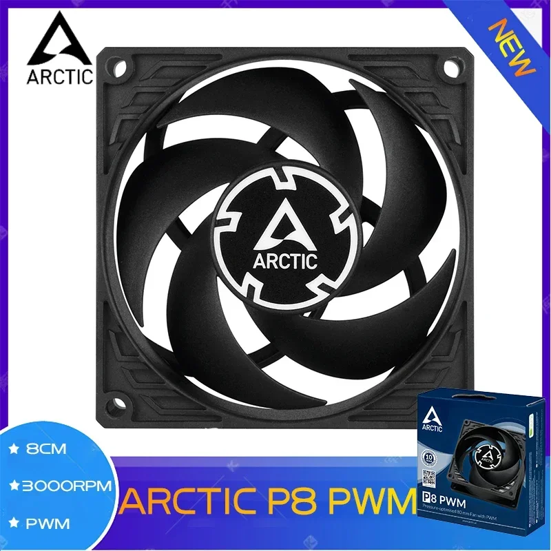 ARCTIC P8 PWM negro presentamentado 80mm 4pin PWM ventilador con cubierta 8cm ventilador de refrigeración de PC 3000RPM FDB CPU ventilador de radiador silencioso