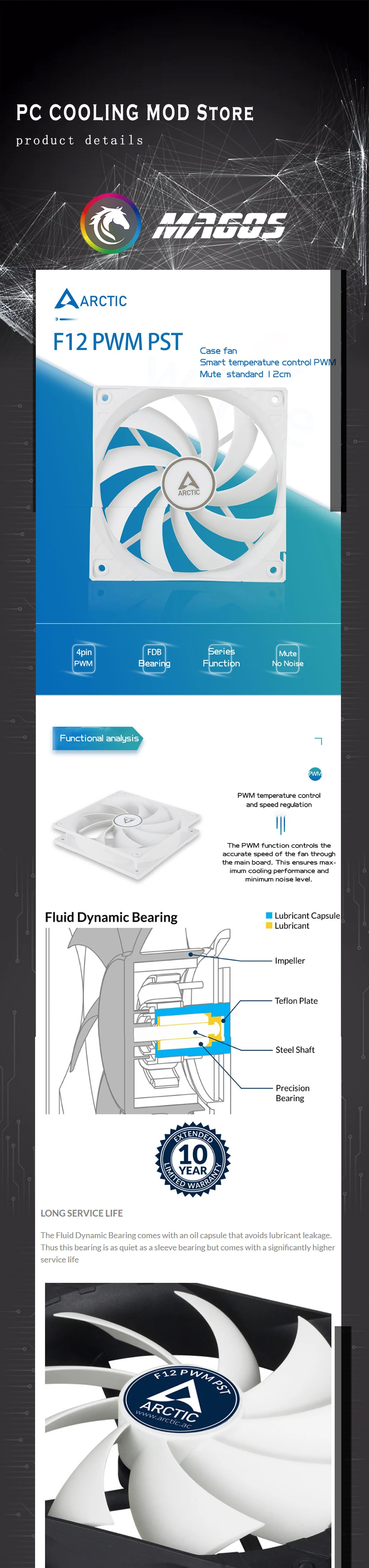 Comprar Arctic-ventilador de refrigeración silencioso F12 PWM PST Co, 12cm, 120mm, FDB, 1800RMP, silencioso, Original, negro/blanco