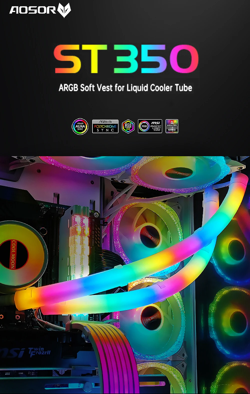 ARGB-cubierta de manguera arcoíris, iluminación de tubo suave LED ST350, 345mm, 5V3PIN, AIO Cooler Armor, refrigeración por agua, chaleco DIY, tubería de silicona luminosa