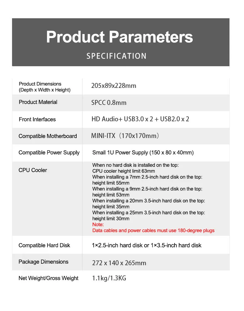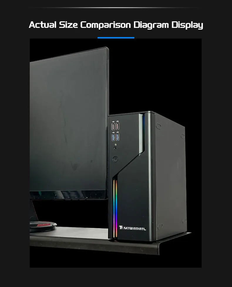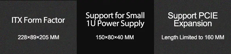 Tamaño: diseño de tamaño extremadamente pequeño (228x205x89 mm) que se adapta tanto a la placa base Mini-ITX (17*17 CM) como a la fuente de alimentación flexible (150*80*40).