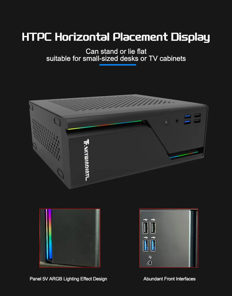 Sistema de enfriamiento: abundantes orificios de emisión de calor, incluido el panel frontal, están diseñados para resolver el problema de enfriamiento común de la carcasa de la mini computadora.