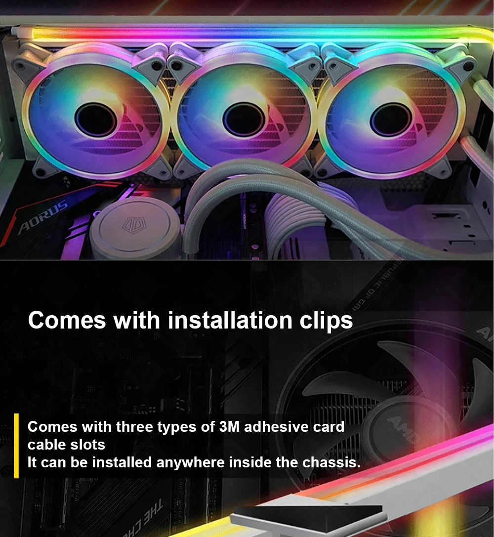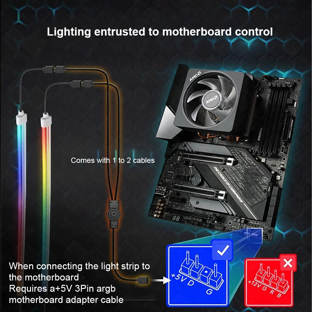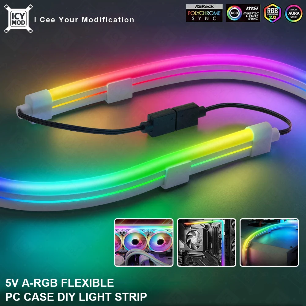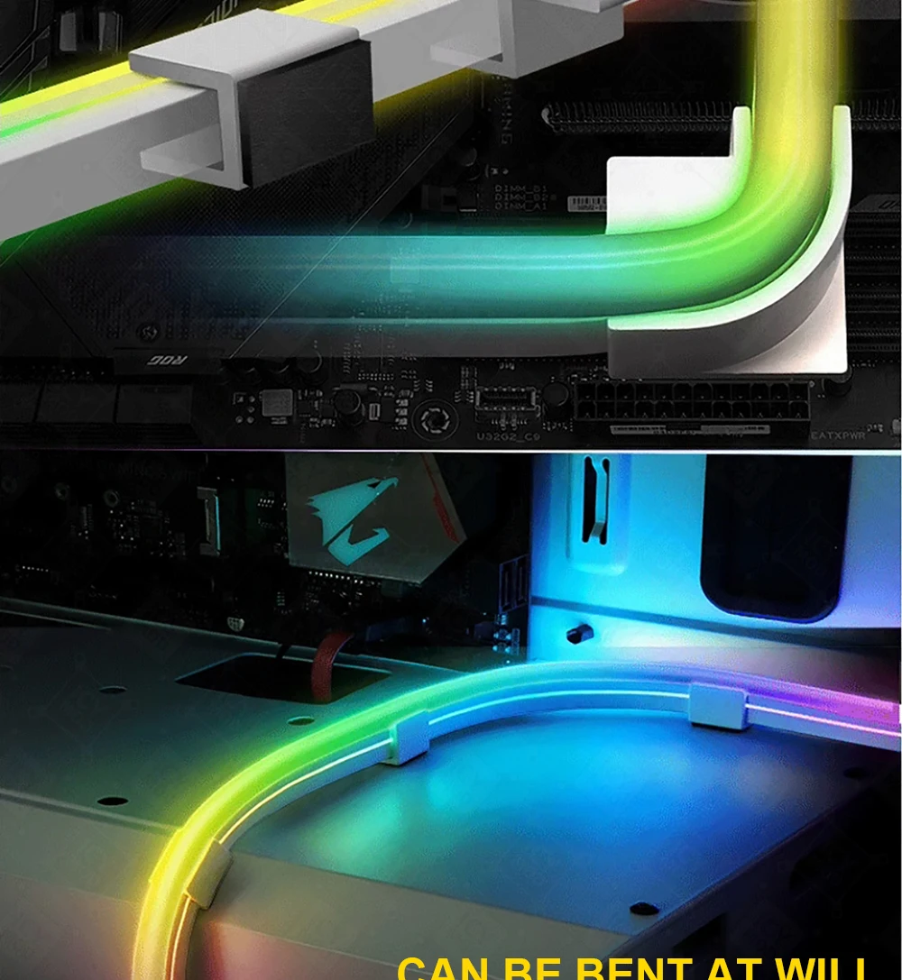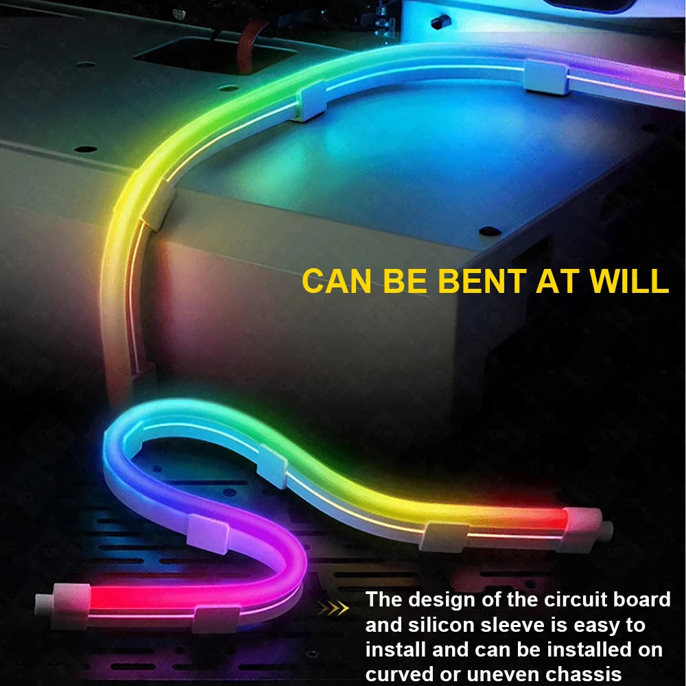 Comprar ARGB-tira de luz Flexible para carcasa de PC, tira de luz LED suave, 40cm x 2/100cm, 5V, 3 pines, AURASYNC para decoración de chasis de placa base