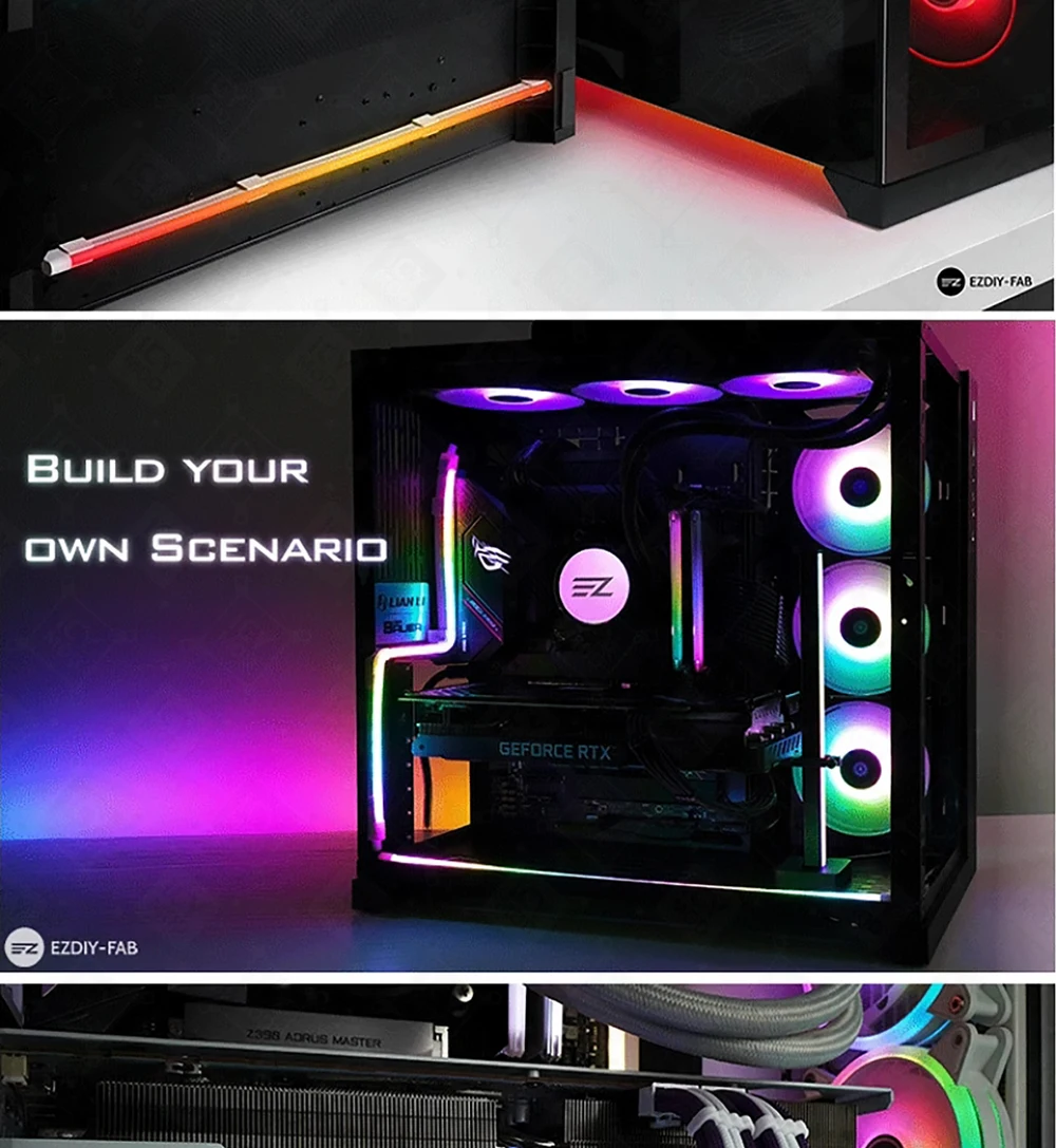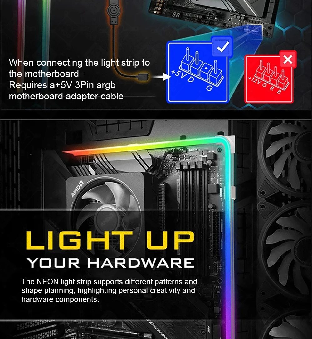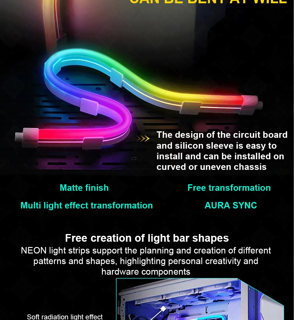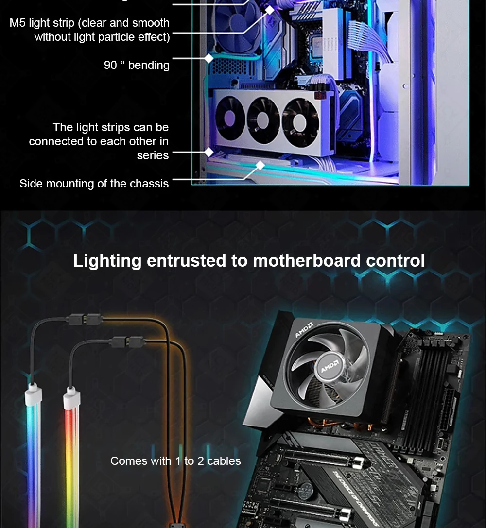 Comprar ARGB-tira de luz Flexible para carcasa de PC, tira de luz LED suave, 40cm x 2/100cm, 5V, 3 pines, AURASYNC para decoración de chasis de placa base