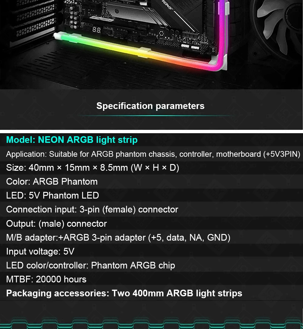 Aplicación: adecuado para chasis ARGB Phantom, controlador, placa base (+ 5V3PIN)