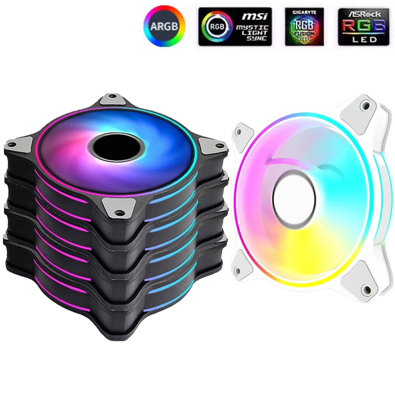 Comprar Argb-ventilador de escritorio Ultra silencioso, 120mm, 5v3Pin 12025, ventilador de chasis LED, Enfriador de PC, sincronización PWM Shenguang, temperatura inteligente