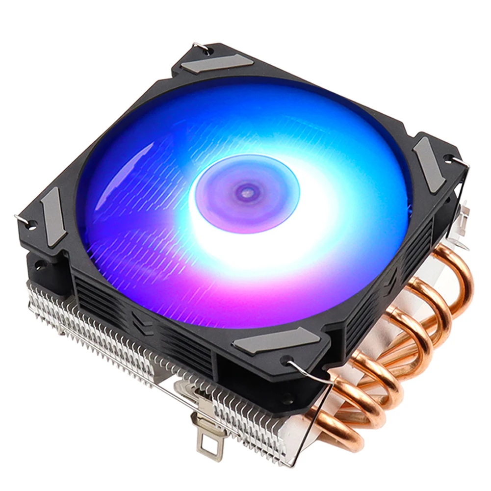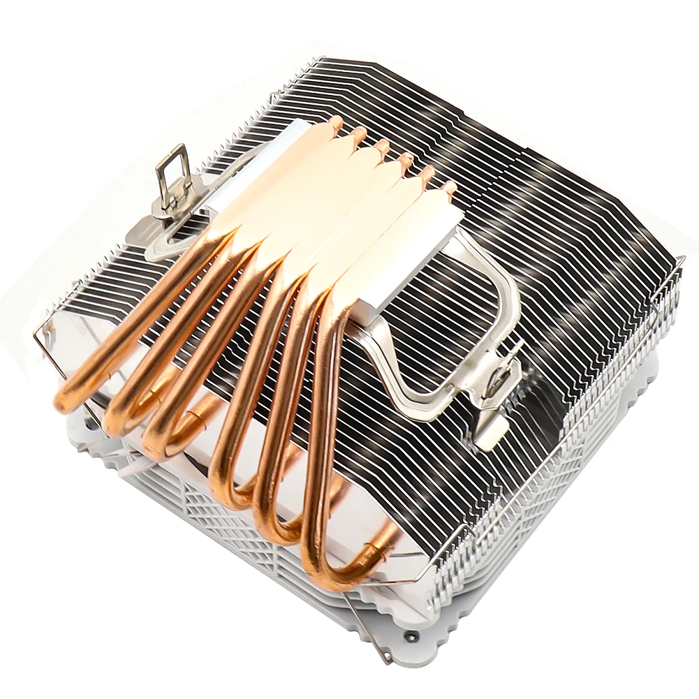 Ventajas del producto: 1. Diseño de soplado hacia abajo. Al reducir la temperatura de la CPU, también reduce la temperatura de la placa base. 2. Tecnología de 6 tubos de calor. Buen rendimiento de disipación de calor, hasta 130W TDP. 3. La parte delantera del ventilador se muestra en el panel lateral del chasis. La apariencia es mejor que la torre. 4. El ventilador de 120mm reduce la temperatura de la placa base en un área grande. 5. La distancia central del borde del tubo de calor a la base está cuidadosamente diseñada para evitar interferencias con el módulo de memoria.