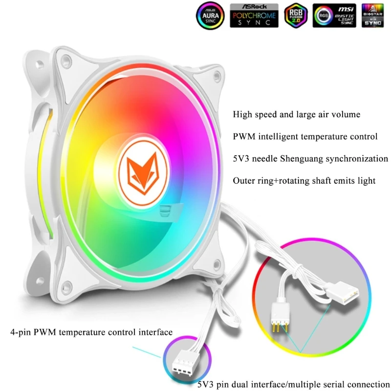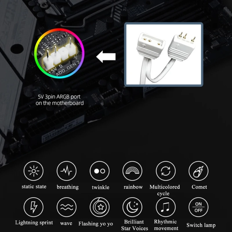 Interfaz ARGB de 5V 3 pines, realice el control de la iluminación del ventilador del software de la placa base y otros productos ARGB cambio de color síncrono. br/