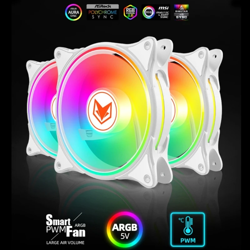 Comprar ARGB-ventilador de refrigeración LED para ordenador de escritorio, carcasa de PC de 120mm, 5V, 3 pines, PWM, disipador térmico, accesorios