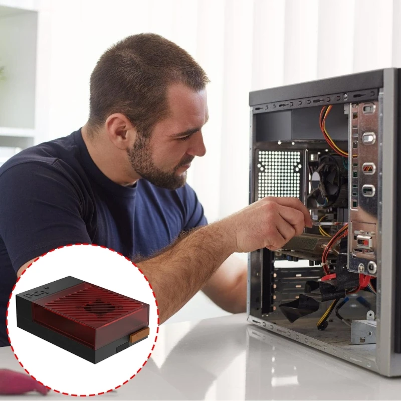 Hecho de materiales ABS, este estuche cuenta con una cubierta superior deslizante y admite un ventilador PWM de 30 mm para una refrigeración eficiente.