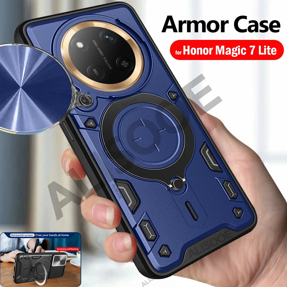 Armadura Funda para Honor Magic 7 Lite Funda deslizante anillo de cámara soporte Funda protectora para Honor Magic 7 Lite BRP-NX1 Capa a prueba de golpes