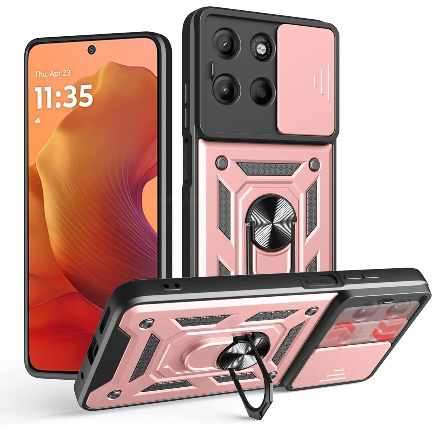 【Protección híbrida】 Doble capa de parachoques de TPU premium de absorción de impactos y carcasa dura de PC de defensa suave con bordes reforzados y amortiguadores de esquinas para proteger su teléfono de todas las caídas, rayones y golpes.
