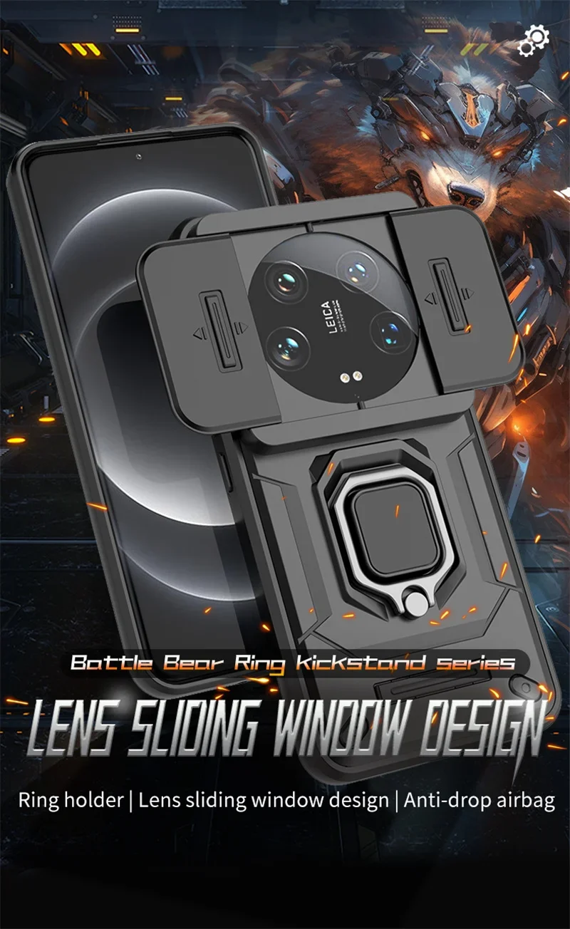 Comprar Armadura Funda para Xiaomi Mi 14 Ultra Funda deslizante lente de cámara anillo de protección soporte Funda de teléfono Xiaomi14 Ultra Coque Mi14 Ultra Capa