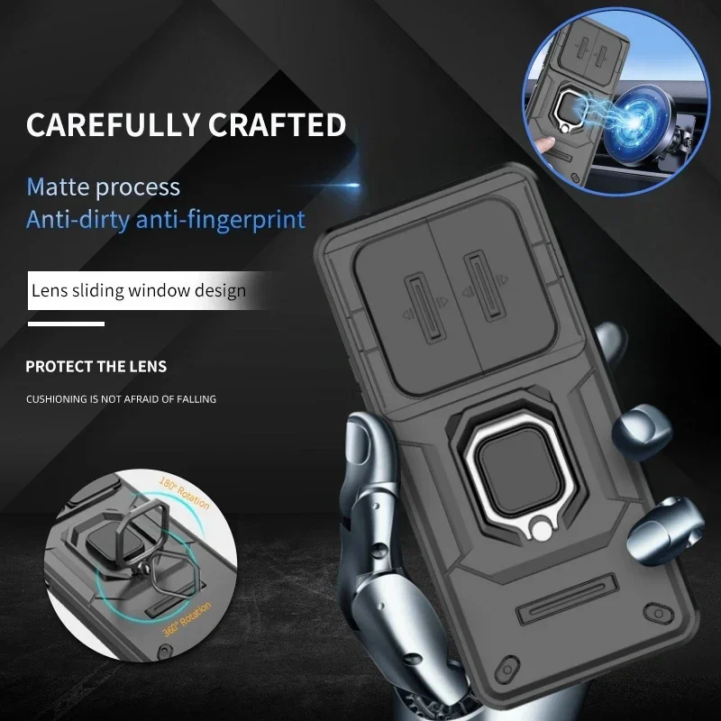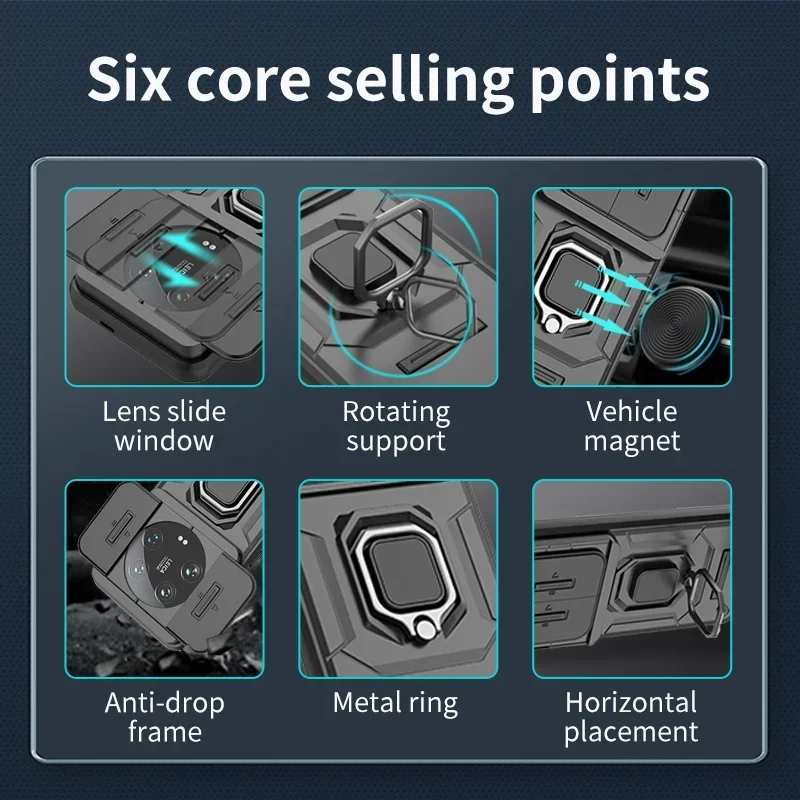 Comprar Armadura Funda para Xiaomi Mi 14 Ultra Funda deslizante lente de cámara anillo de protección soporte Funda de teléfono Xiaomi14 Ultra Coque Mi14 Ultra Capa