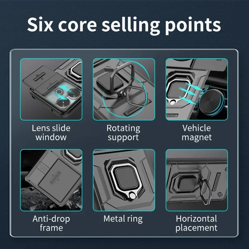 Comprar Armadura Funda para Xiaomi Poco M6 4G Funda deslizante lente de cámara protección Funda de teléfono Pocco Poko Little M6 M 6 PocoM6 Fundas con soporte de anillo