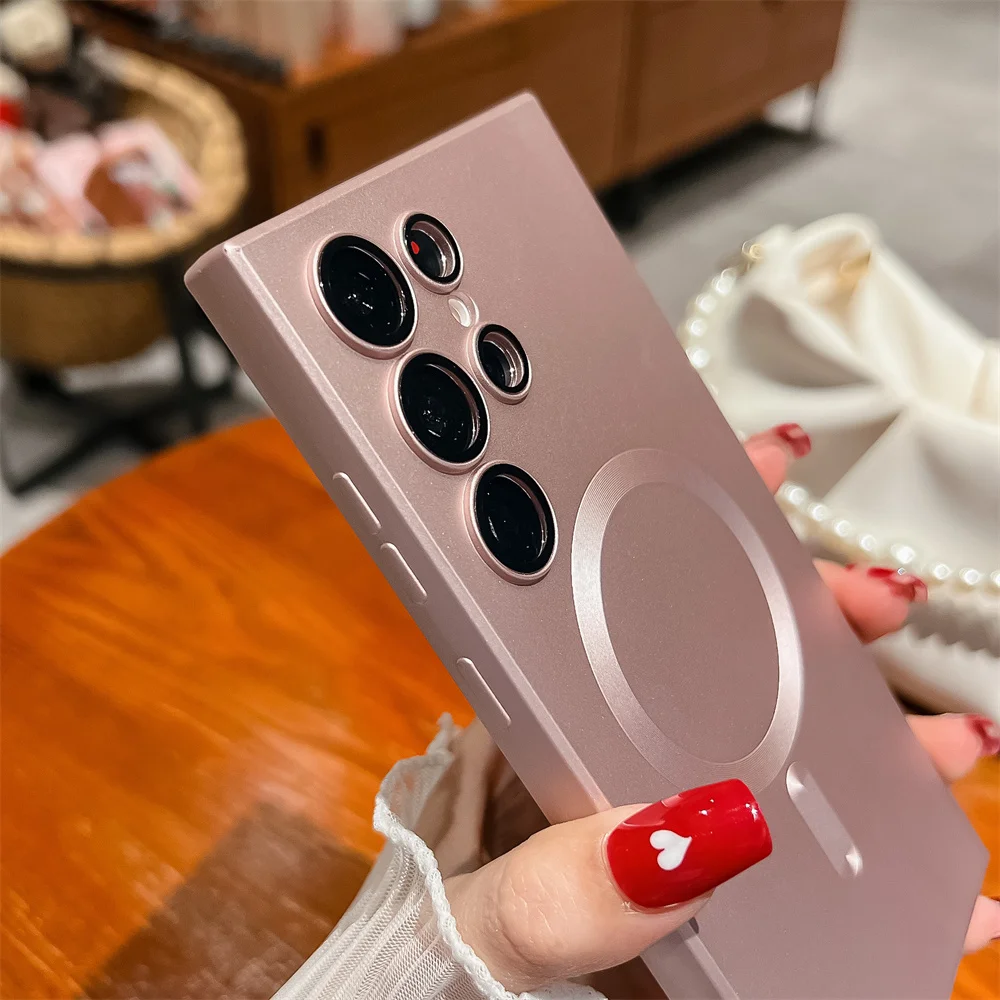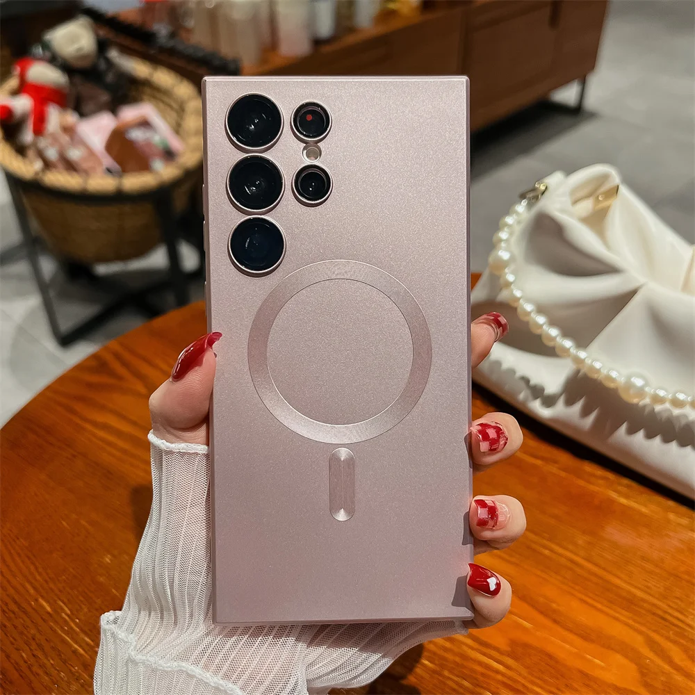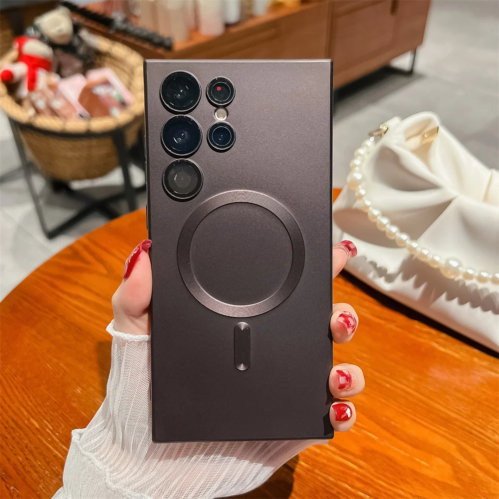 Armadura mate metálica de lujo para funda magnética Magsafe para Samsung S24 S23 S22 S21 Ultra Plus FE Note20 A15 A05S A55 A35 cubierta