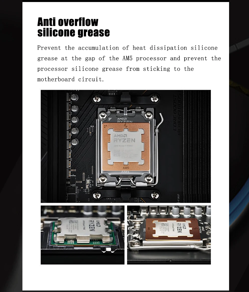 Comprar Armadura protectora de CPU AM5, silicona antidesbordamiento, disipación de calor mejorada para 7600X 7700X 7900X 7950X
