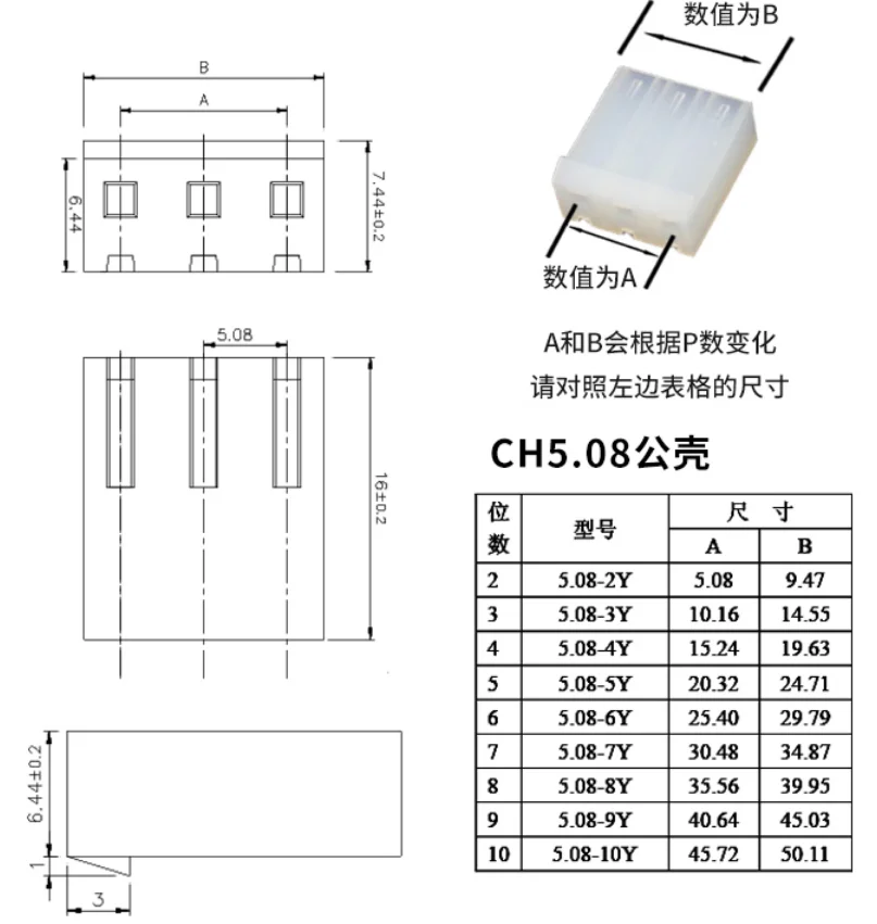 Conector de un solo lado: un lado con conector hembra de carcasa CH5.08, el otro lado con 3CM estañado