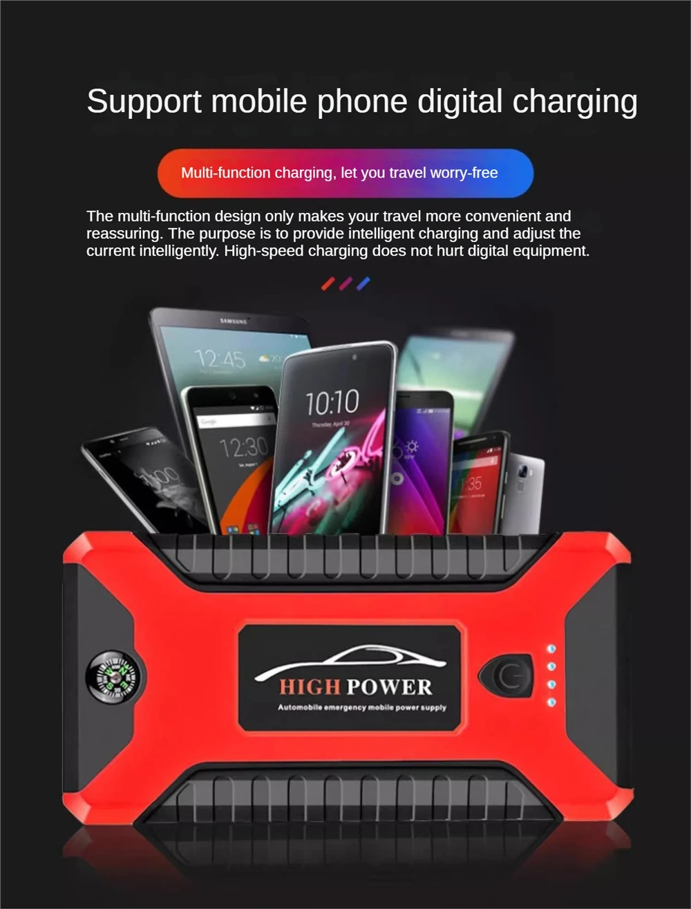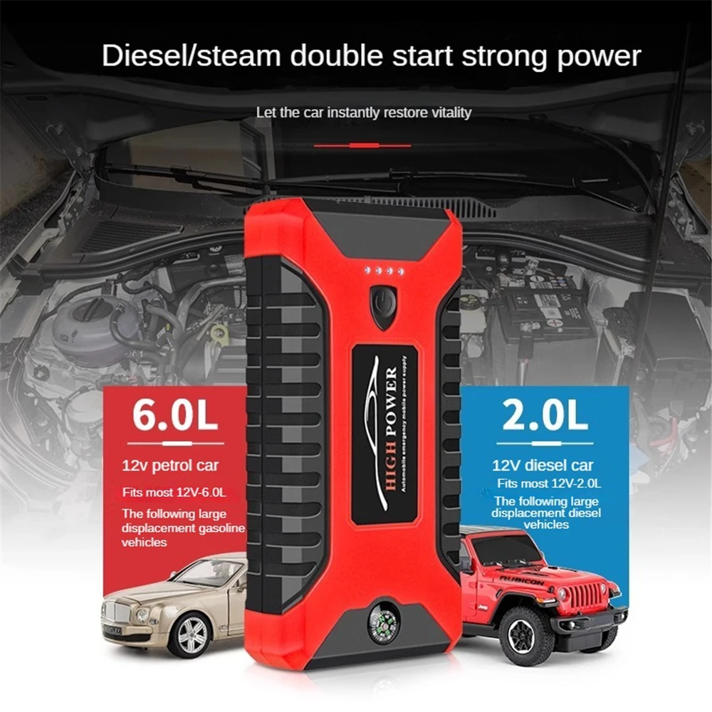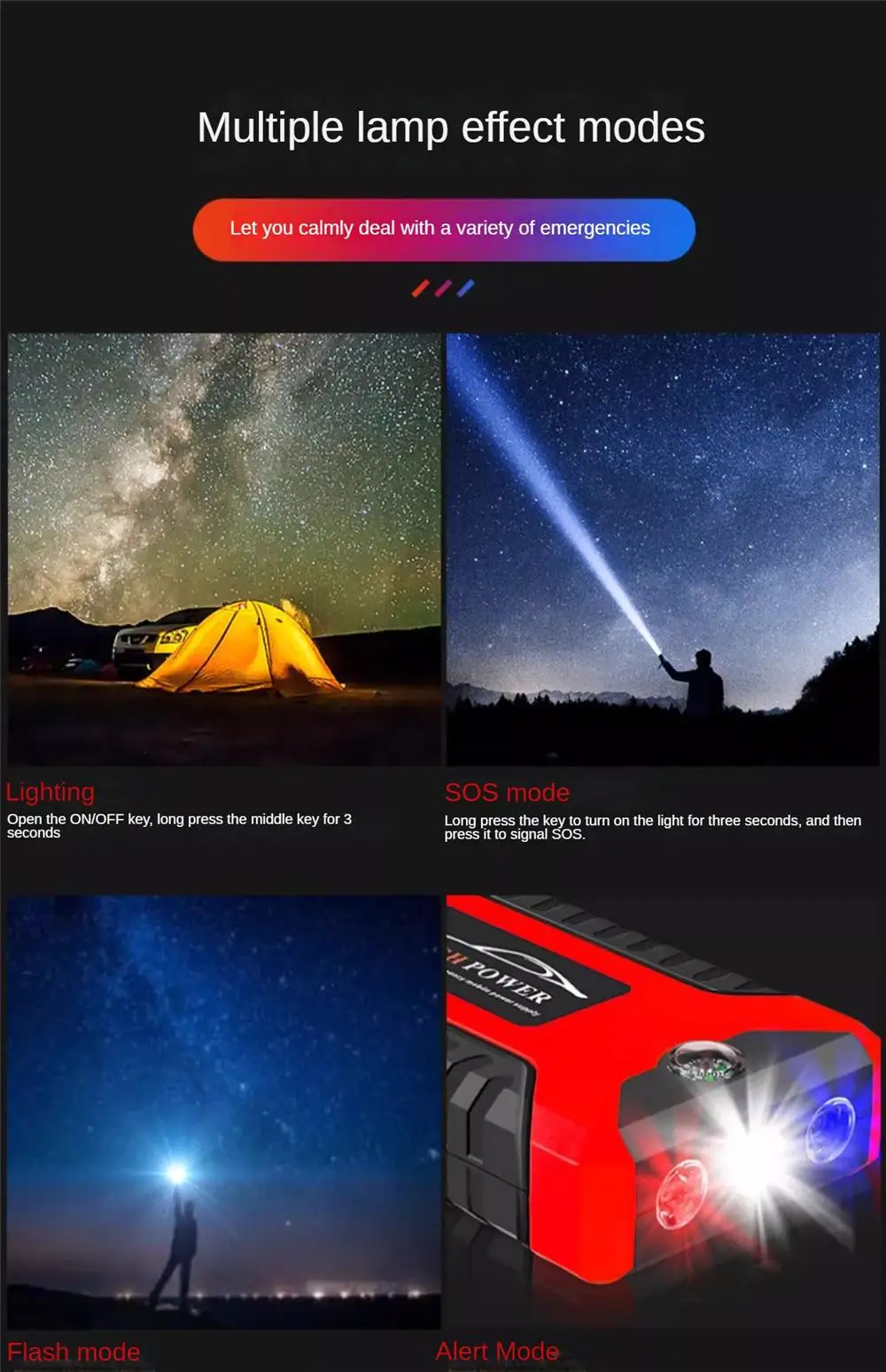 Arrancador de batería de coche, Banco de energía, potenciador de batería de coche portátil, dispositivo de arranque automático, iluminación de arranque de emergencia automática