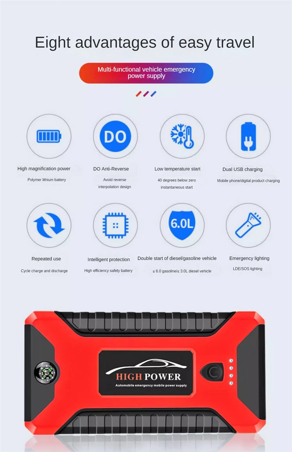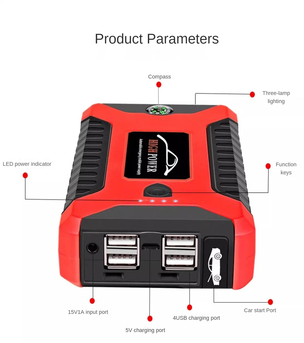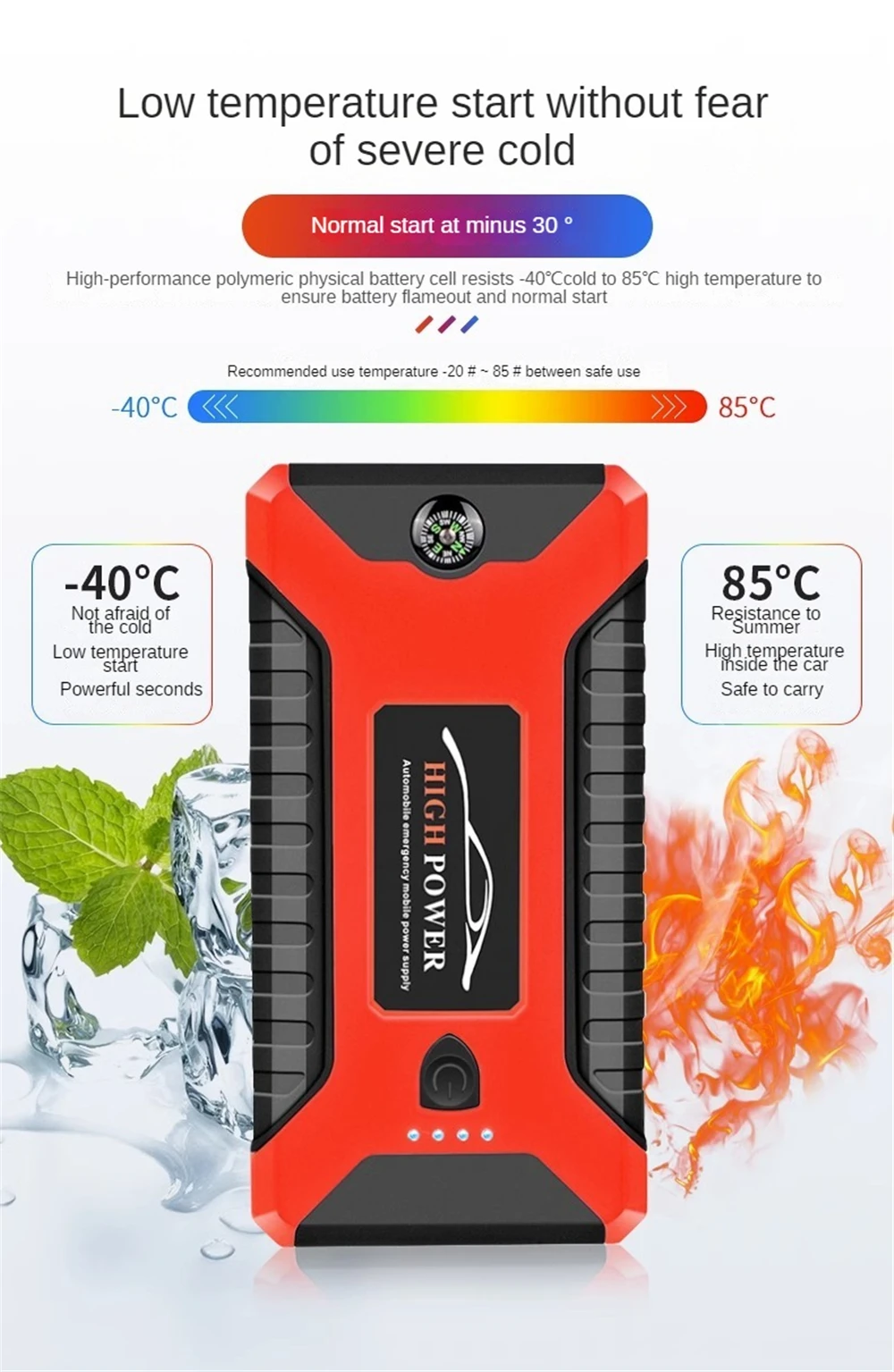 Arrancador de batería de coche, Banco de energía, potenciador de batería de coche portátil, dispositivo de arranque automático, iluminación de arranque de emergencia automática