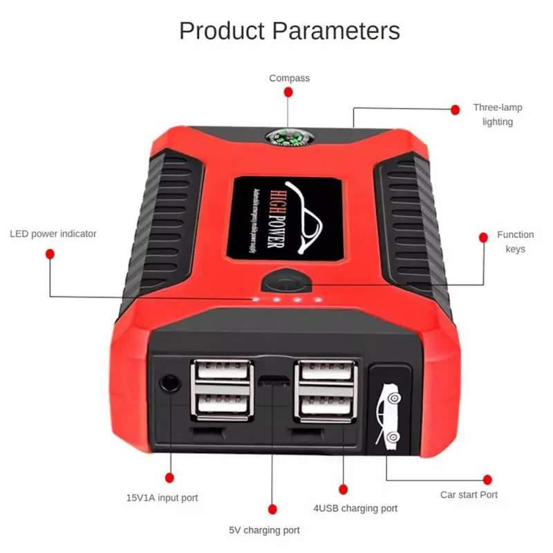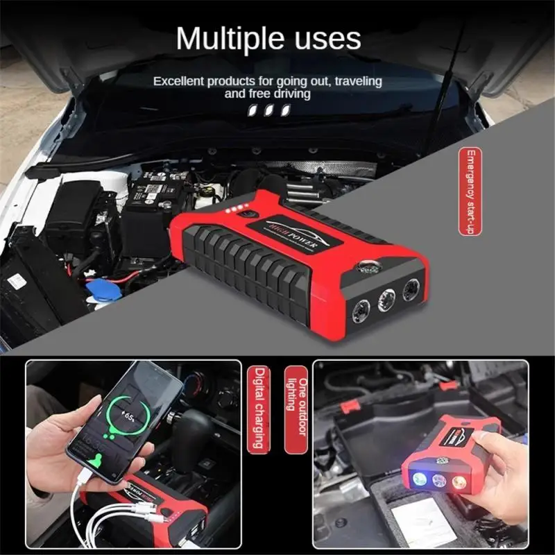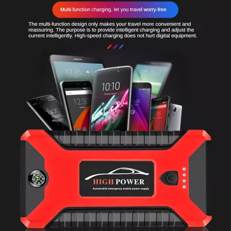 Arrancador de batería de coche, Banco de energía, potenciador de batería de coche portátil, dispositivo de arranque automático, iluminación de arranque de emergencia automática