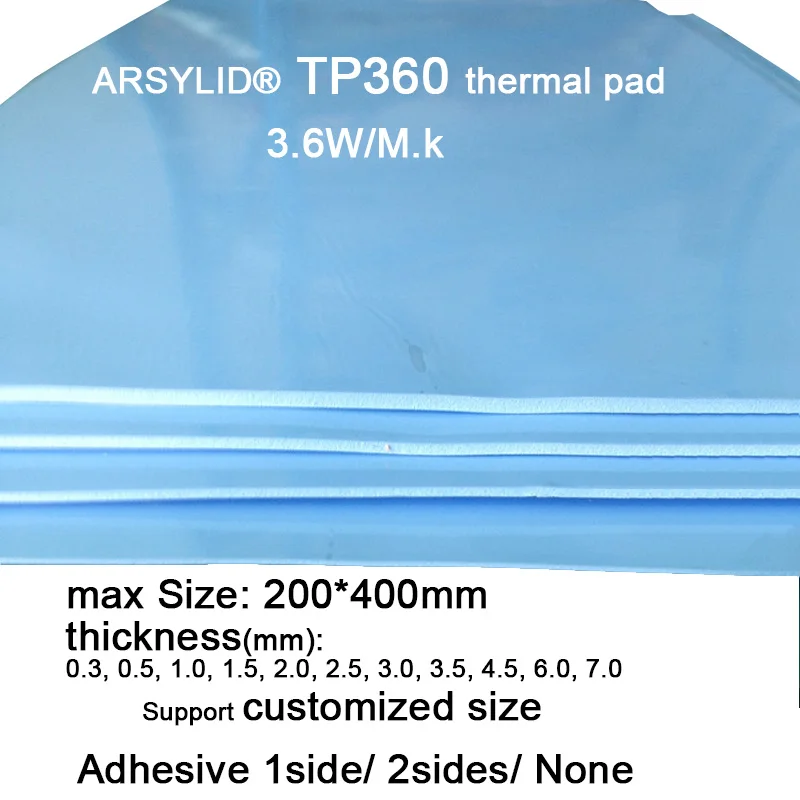 ARSYLID-almohadilla térmica de silicona TP360 3,6 W/m.k de alta calidad, disipador térmico de refrigeración para M.2 CPU GPU VGA Chip 2mm 2,5mm 3mm 3,5mm