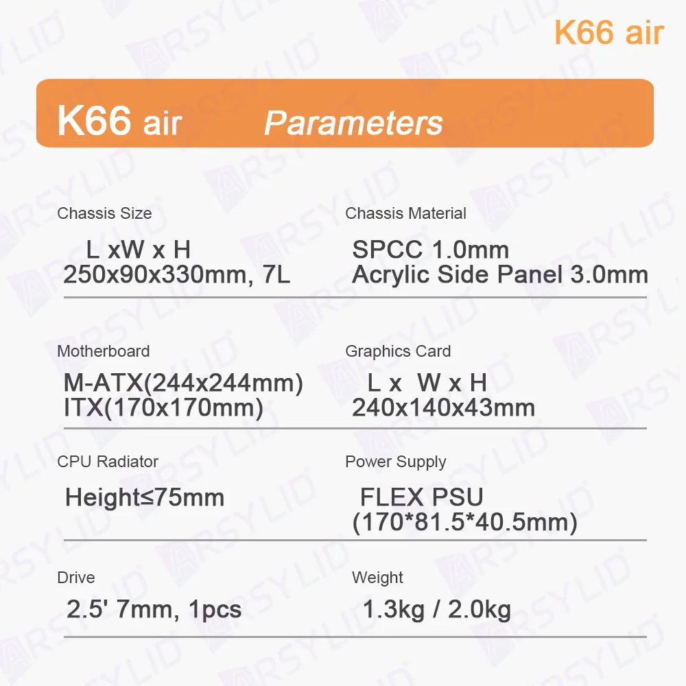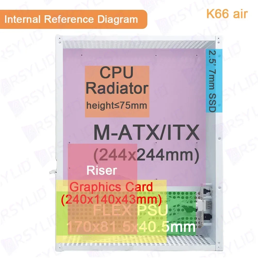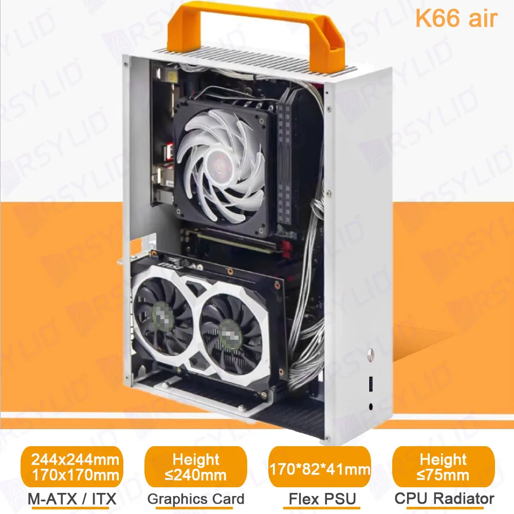Comprar ARSYLID-chasis K66 Air M-ATX ITX Thin A4, radiador de 75mm, 240mm, tarjeta gráfica flexible, PSU, SGPC, K66air