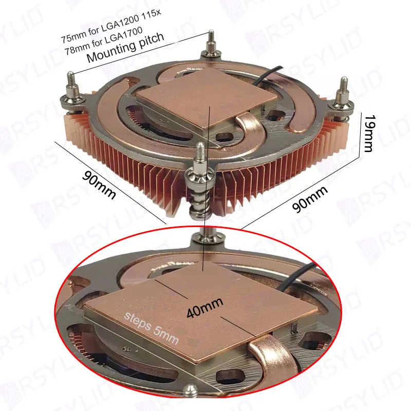 Comprar ARSYLID-radiador de CPU ultradelgado, 19mm, Base de cobre puro, aleta, disipación de calor ultrafina, ventilador de refrigeración LGA1700 LGA1200 115x