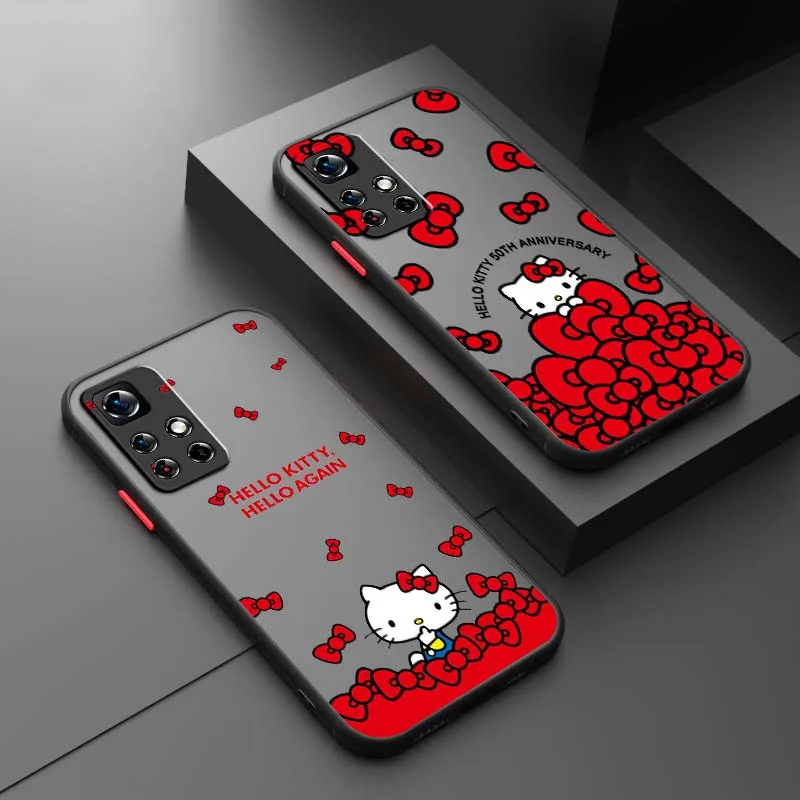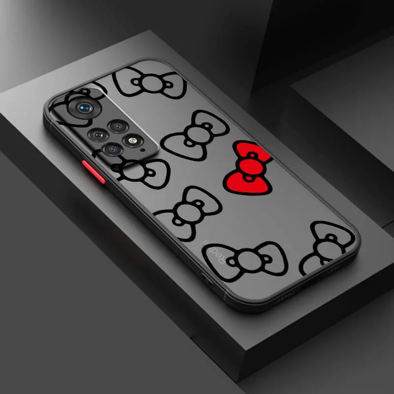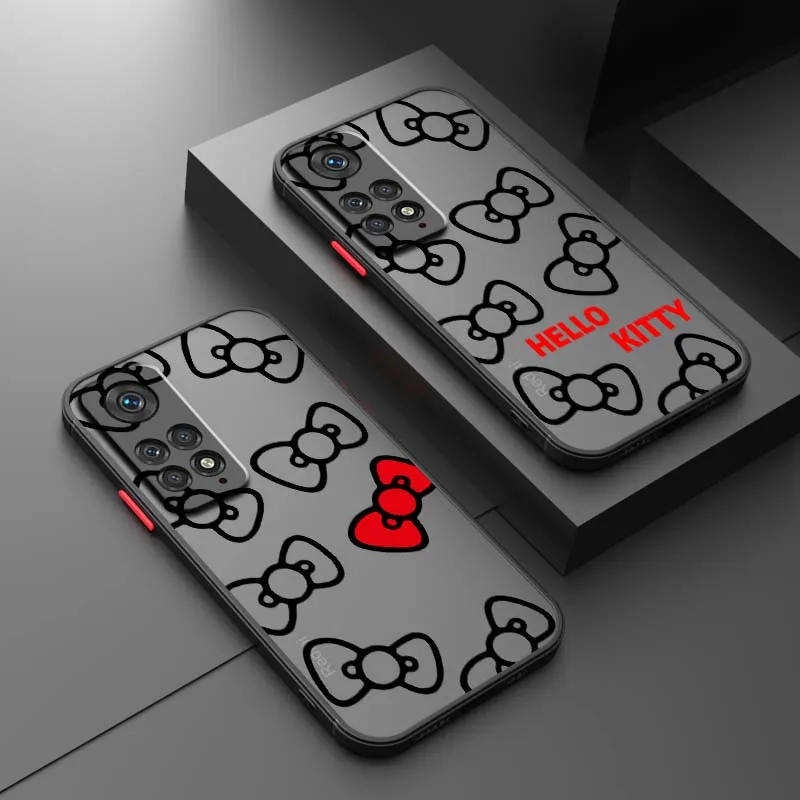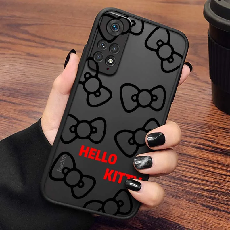 Comprar Arte de dibujos animados Hello k-kitty arco funda de teléfono para Xiaomi Redmi Note 13R 13 12 12S 11 12T 11S 11E 11T 10 Pro Plus esmerilado translúcido