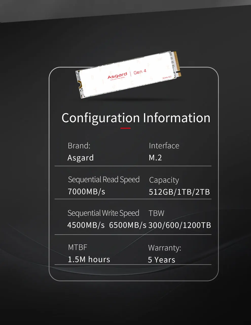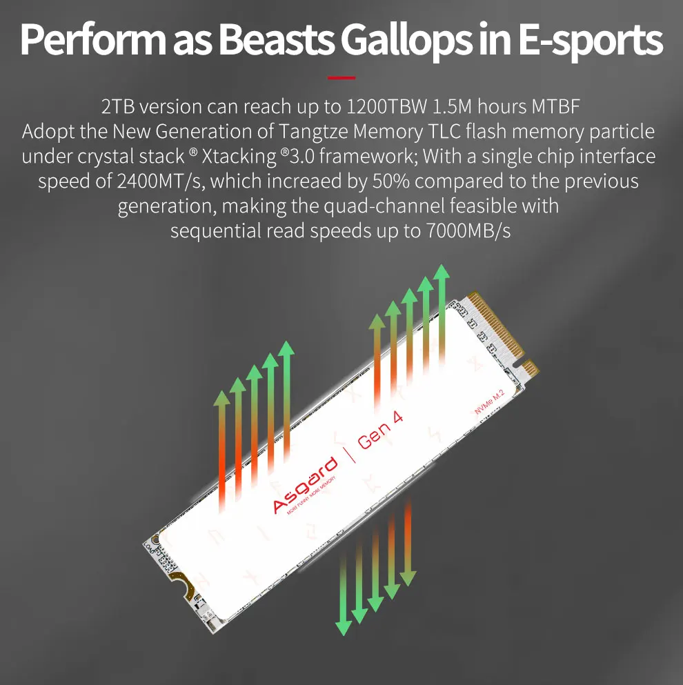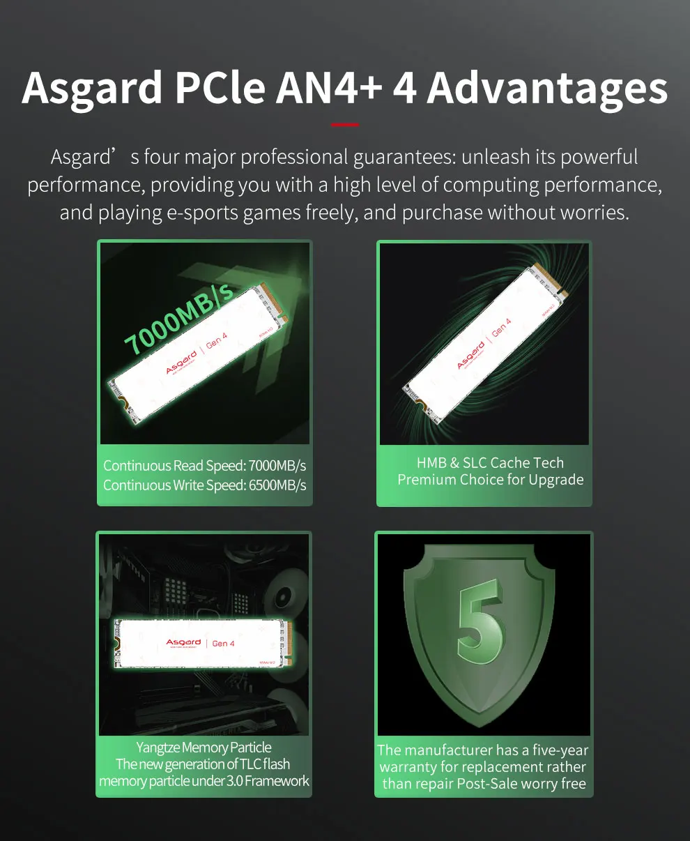 Asgard M2 SSD GEN4 M.2 2280 Pcle 4,0 X4 NVMe 1TB 2TB Disco duro interno