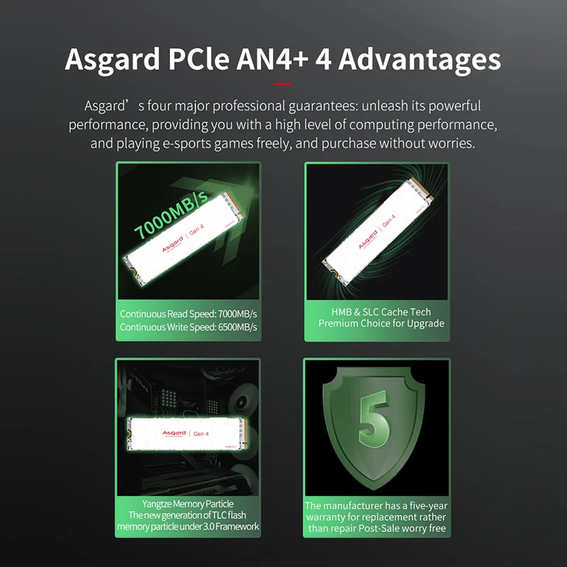 Asgard M2 SSD GEN4 M.2 2280 Pcle 4,0 X4 NVMe 1TB 2TB Disco duro interno