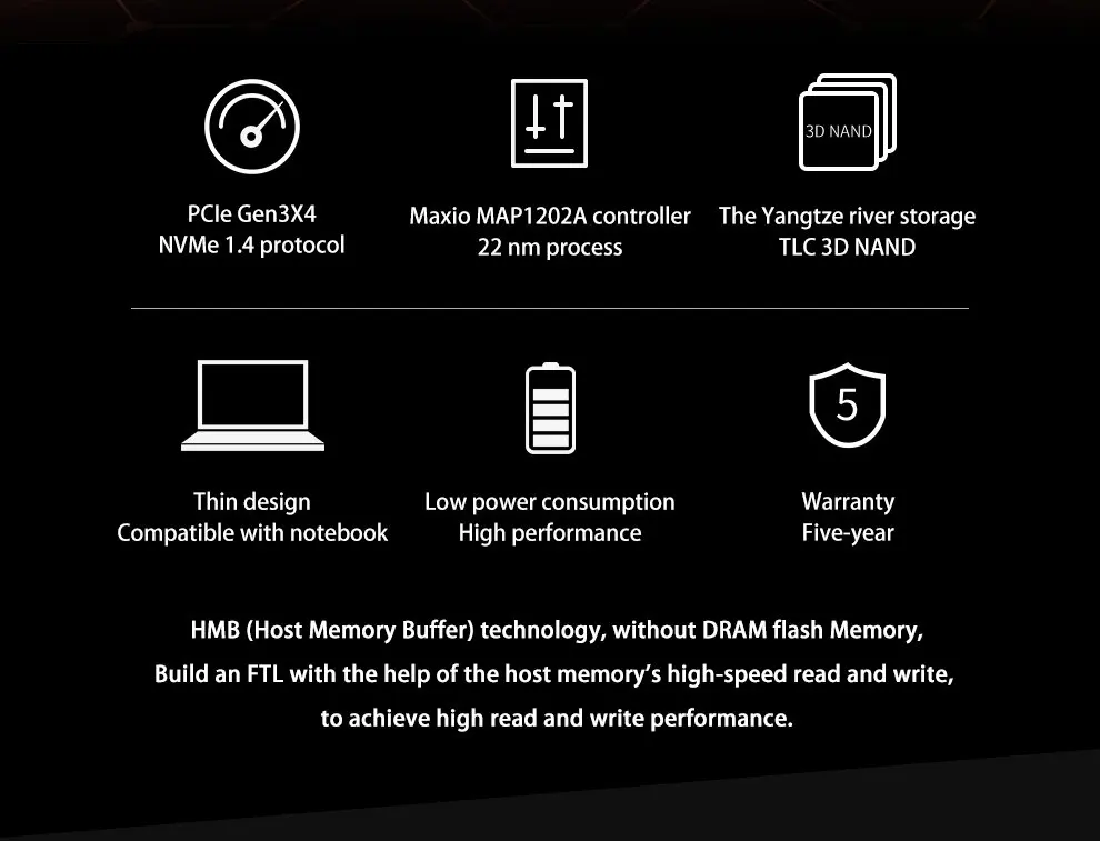 PS:The speed is just for your reference, SSD speed will be influenced by many factors, such as interface type, computer hardware grade, computer and test system.