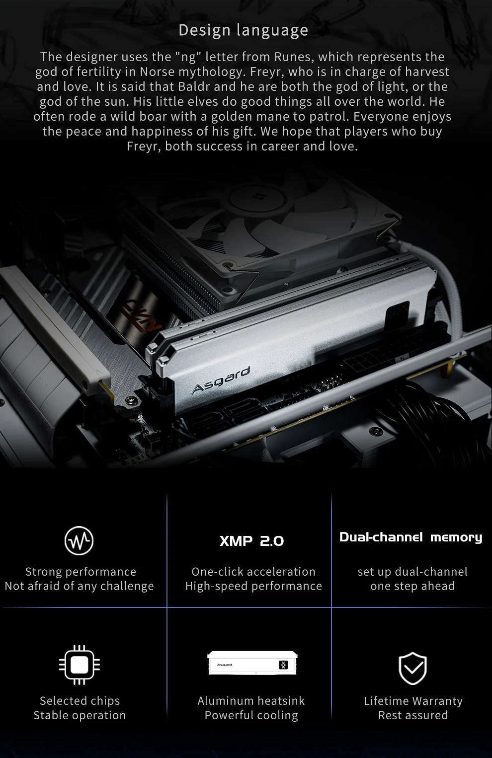 Asgard ddr4 ram memory ddr4 8gb 16GBx2 3600MHZ ram ddr4 Feryr Series metal heat sink for PC