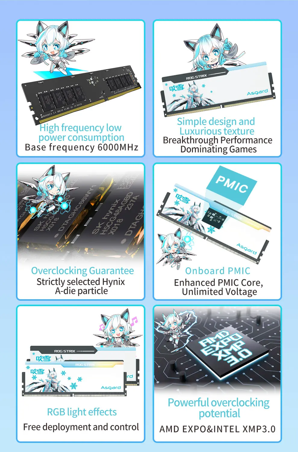 Asgard ROG STRIX DDR5 RGB RAM Memoria 32GB 6400MHZ 6800MHZ 7200MHZ 7600MHZ UDIMM Memoria interna de escritorio para escritorio A die