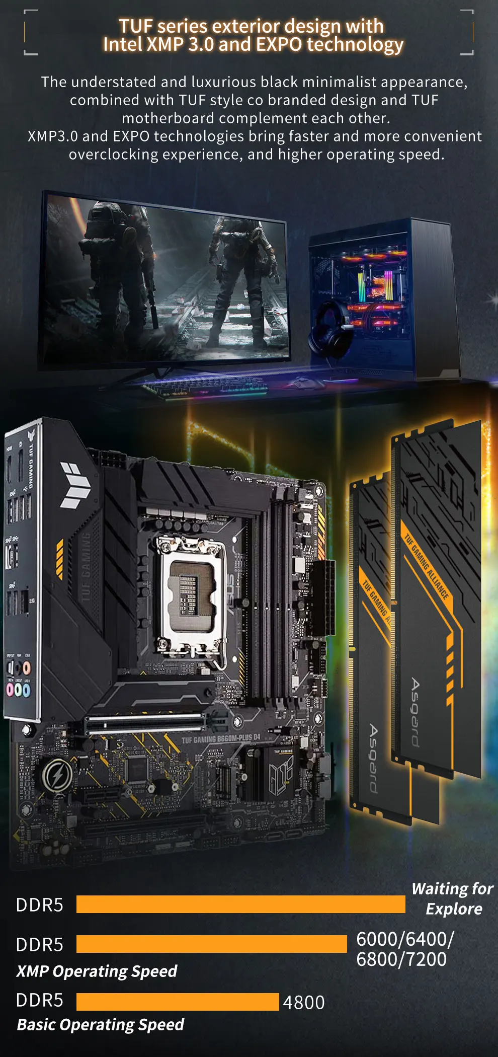 Comprar Asgard TUF Co-brand DDR5 RAM para escritorio UDIMM 16GBx2 32GBx2 6000MHz 6400MHz 6800MHz Actualización de memoria de alta velocidad