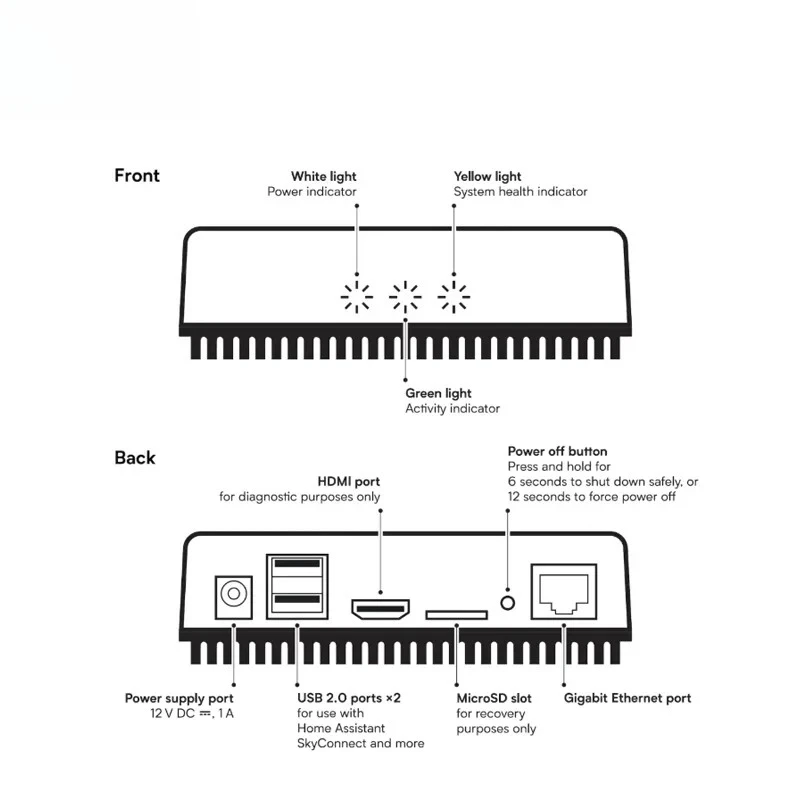 Ecossistema Home Assistant extenso y sostenible:Admite Home Assistant SkyConnect para Zigbee/Thread, Home Assistant Cloud para asistentes de voz, así como accesorios de terceros para admitir otros estándares inteligentes