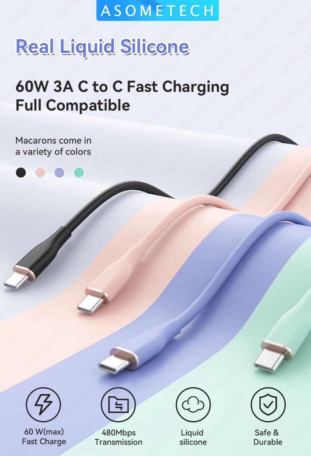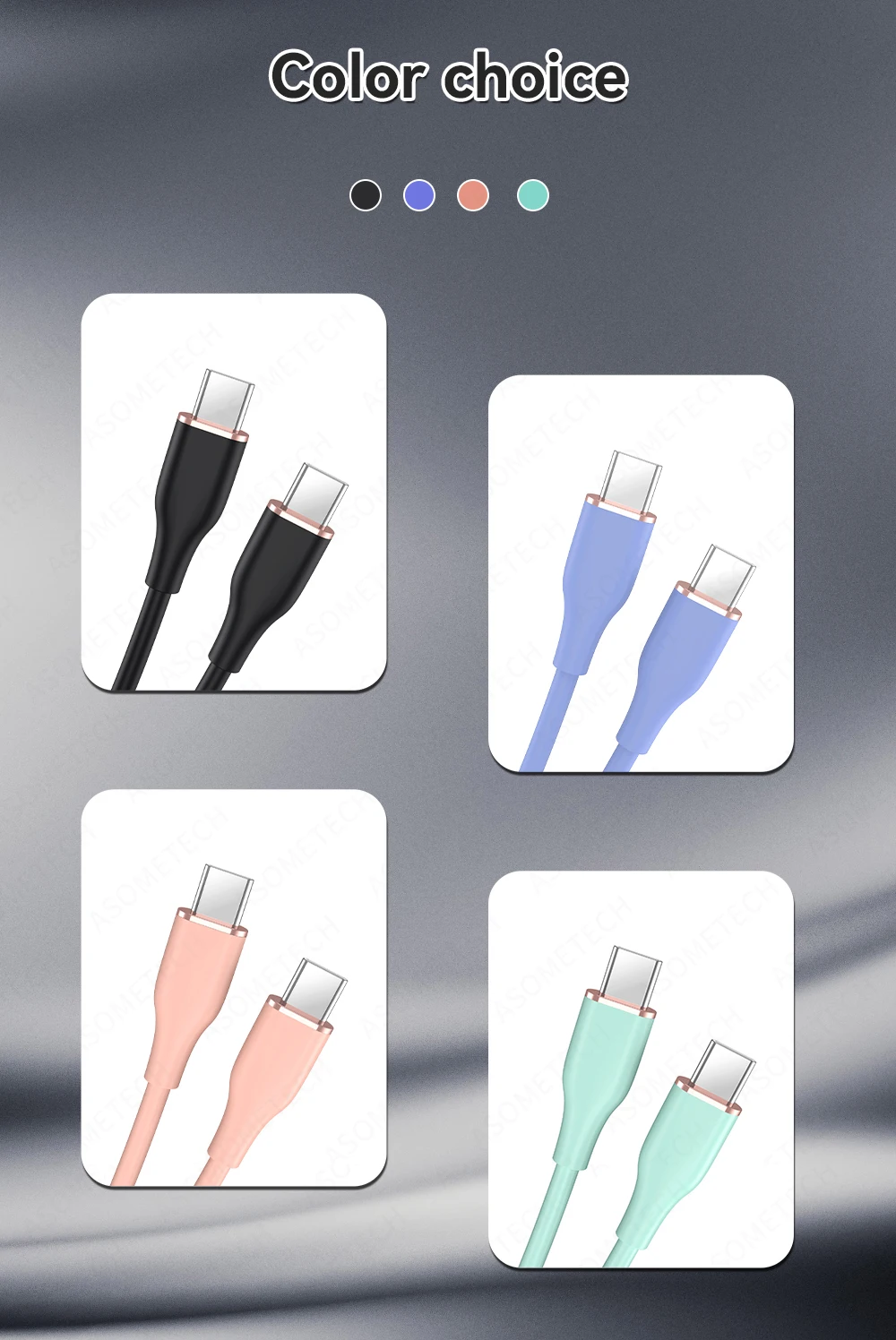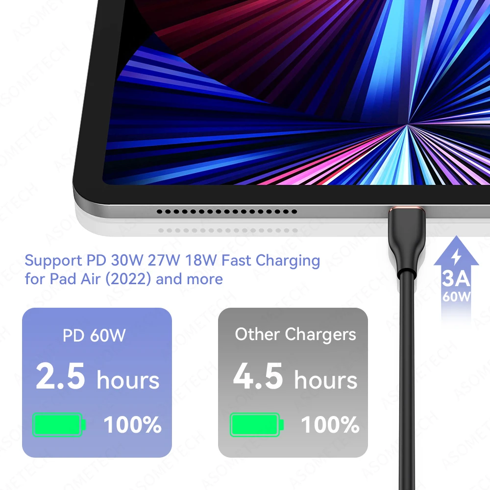 ② Material de alambre: material de silicona líquida de calidad alimentaria, El alambre es suave y no es fácil de sucio, duradero. ③ Potencia: soporte Huawei portátil 60W carga rápida, teléfono celular Huawei 40W carga súper rápida, teléfono celular Huawei 22,5 W carga súper rápida, portátil Xiaomi 65W carga rápida, soporte Apple iPad carga rápida, etc.