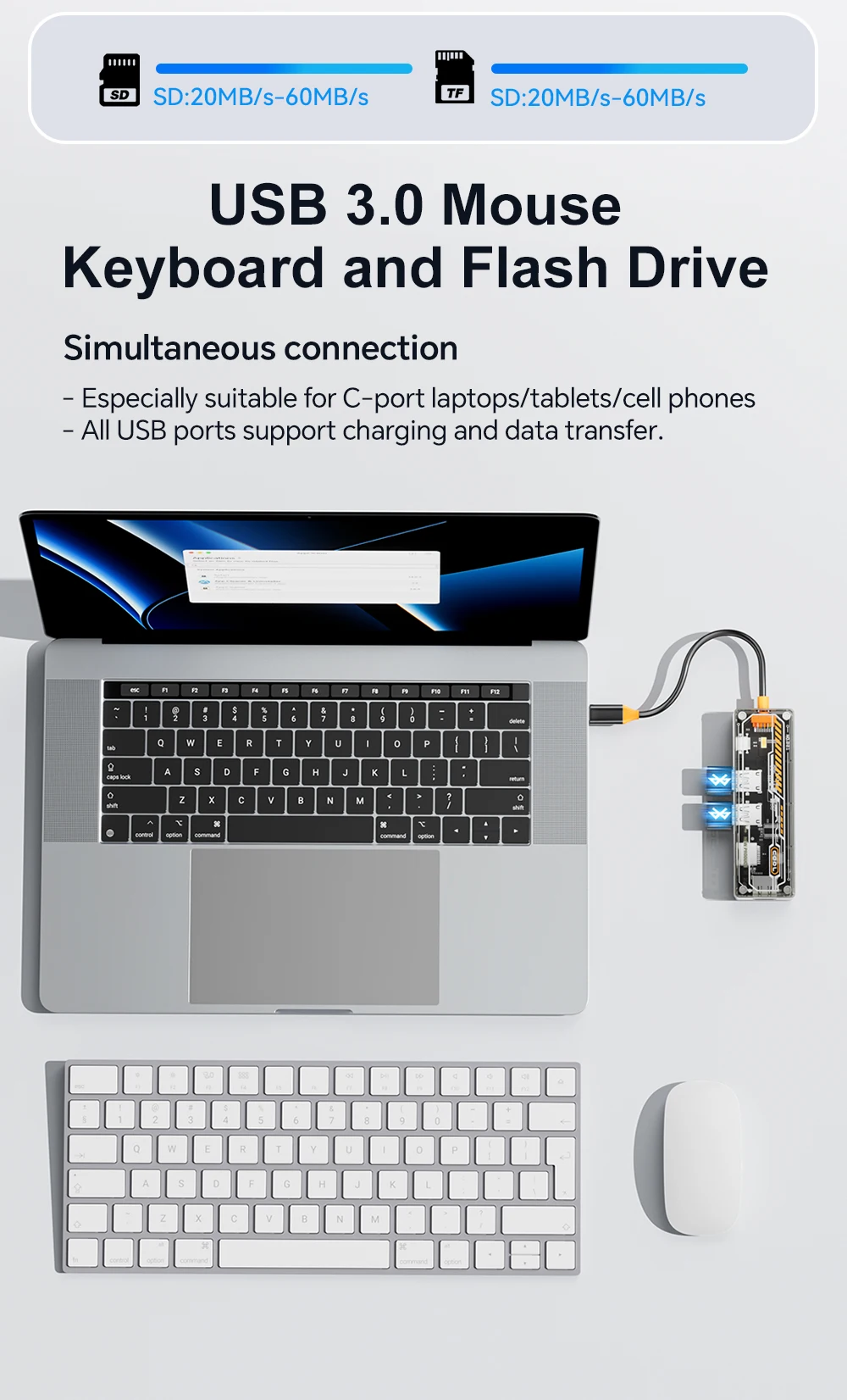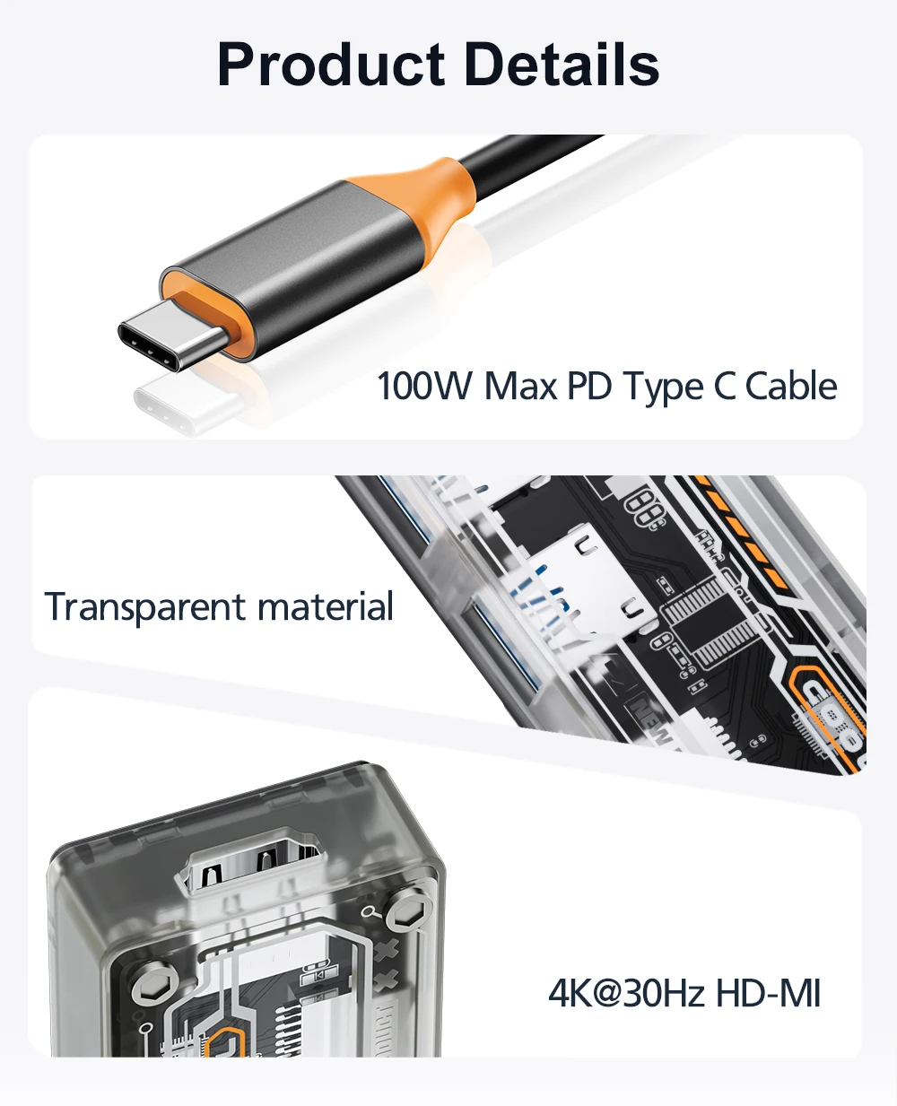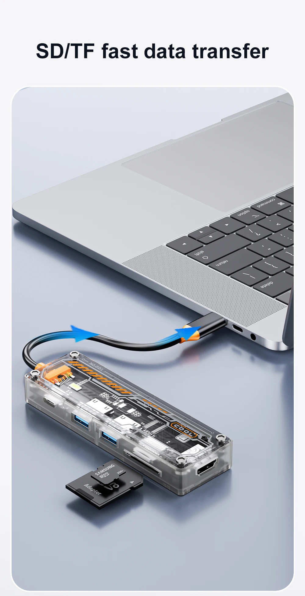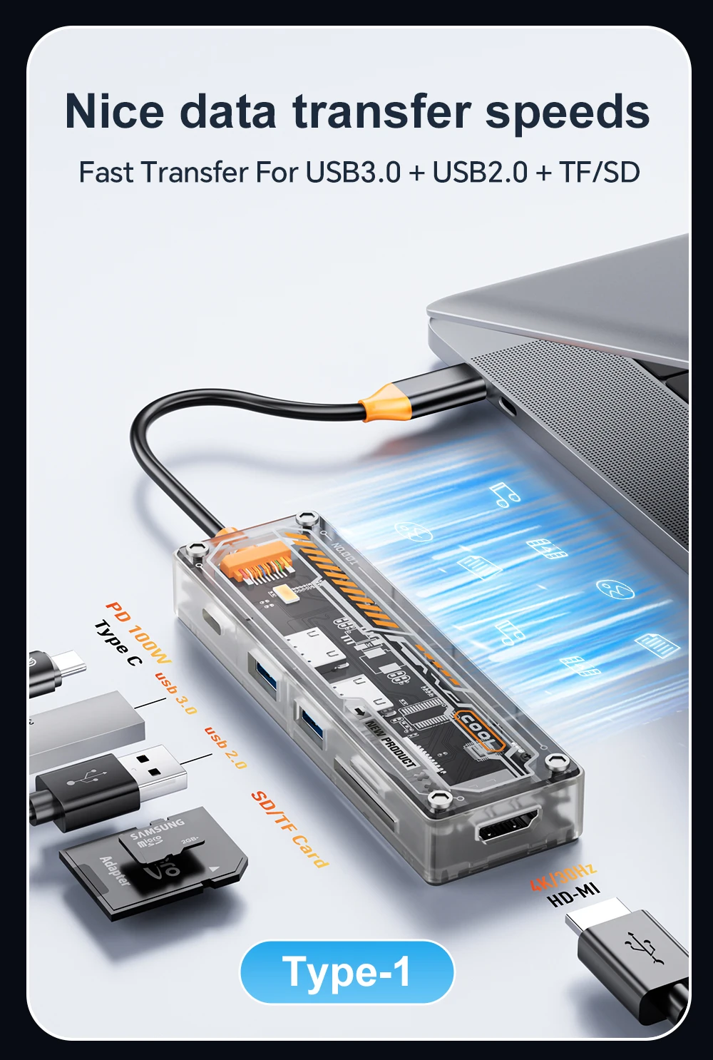 Interfaz tipo C a PD + USB3.0 + USB2.0 + SD + TF +