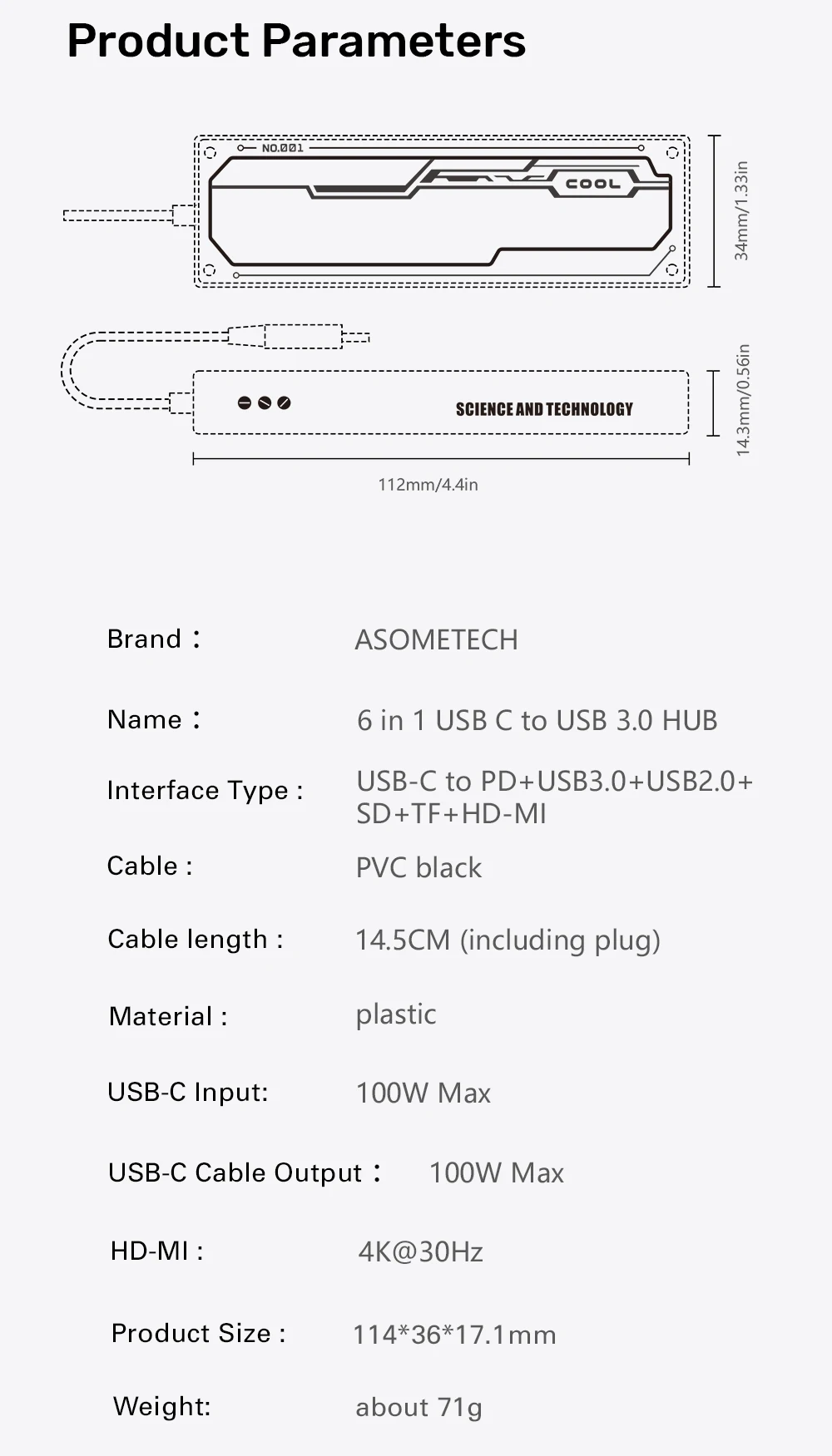 Comprar ASOMETECH 6 en 1 USB HUB tipo c a HDMI Compatible 4K TF PD 100W adaptador para Macbook Pro USB 3,0 Hub portátil tableta Accesorios