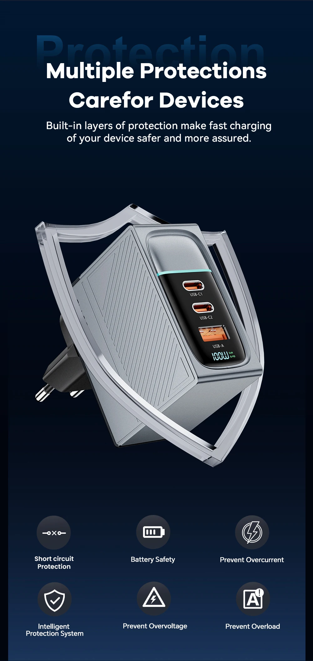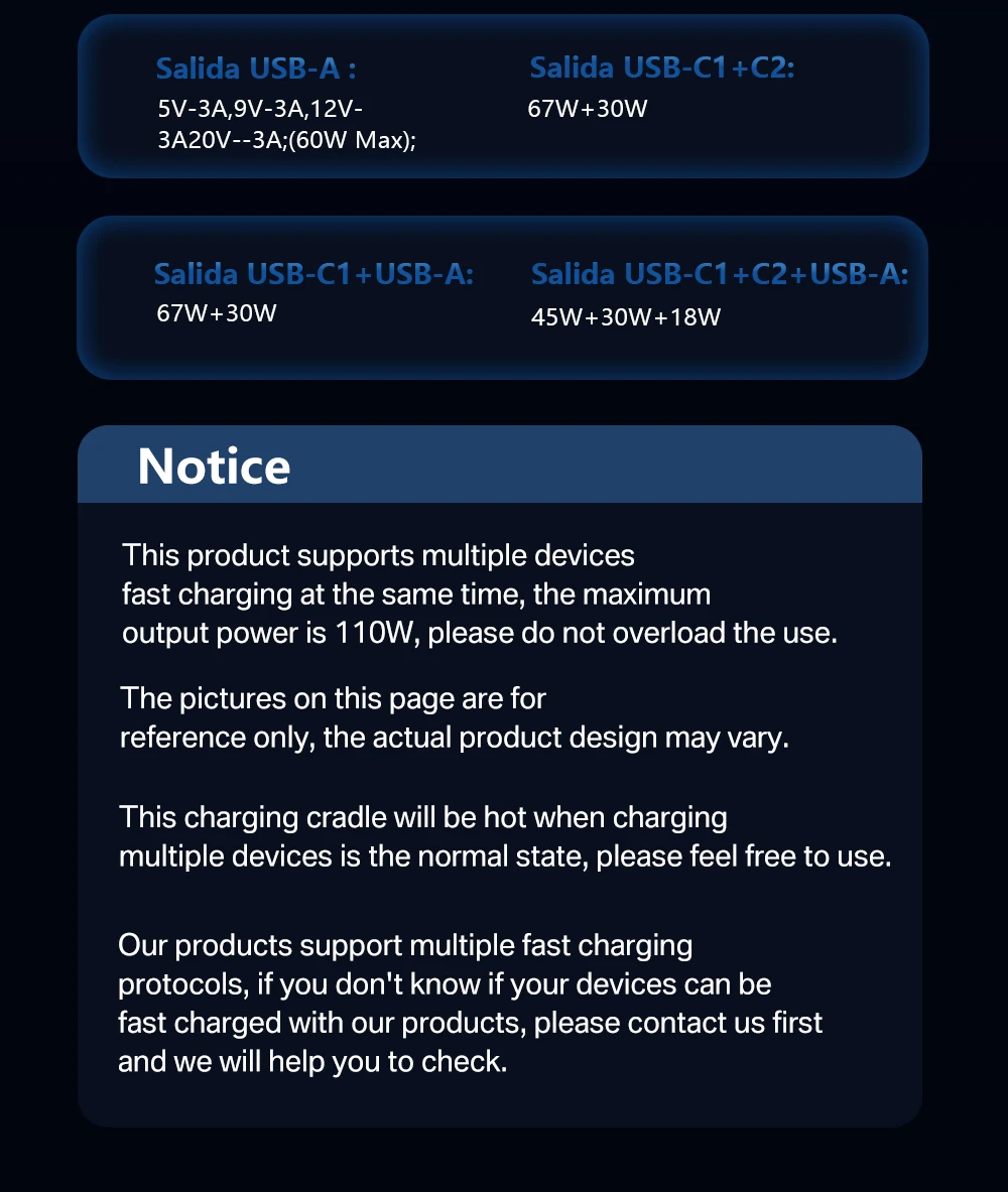 ⚡USB-C2 + USB-A salida: 67W + 30W